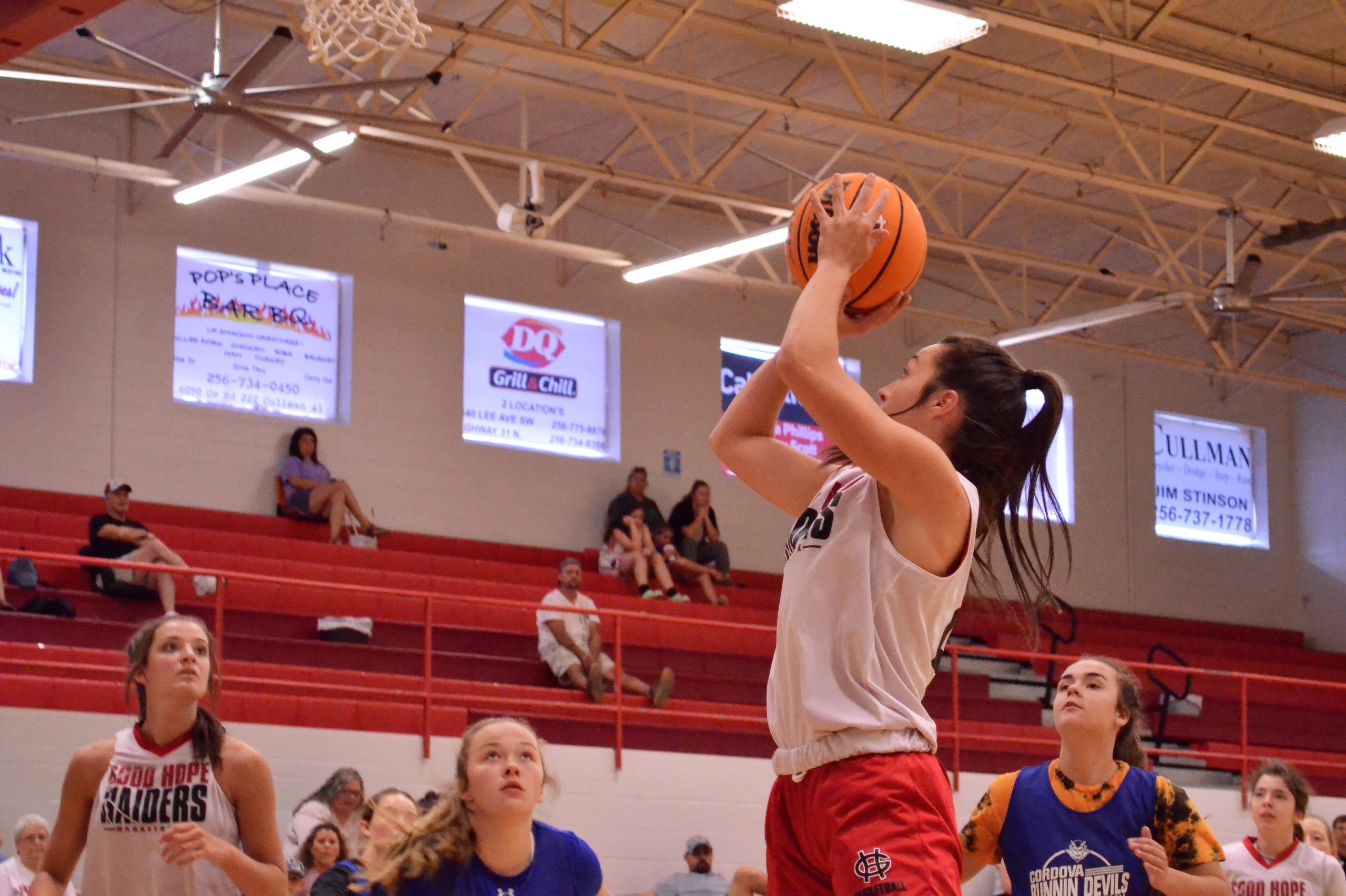 GOOD HOPE, Ala. – Tuesday was packed with more summer games for several local teams and both the Good Hope Raiders and Lady Raiders varsity squads hosted matchups on their home floor. The Raiders split their early games, routing Falkville 70-39 and dropping a tight contest with Fayette County 49-47. The Lady Raiders took the floor immediately following the Raiders’ matchup with Fayette County and dismantled Cordova 64-14 to earn their first win of the day.