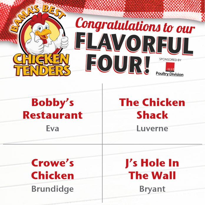 MONTGOMERY, Ala. – The 2021 Bama’s Best Chicken Tenders Contest has been narrowed down to a flock of four, with one of Cullman County’s very own making the cut!