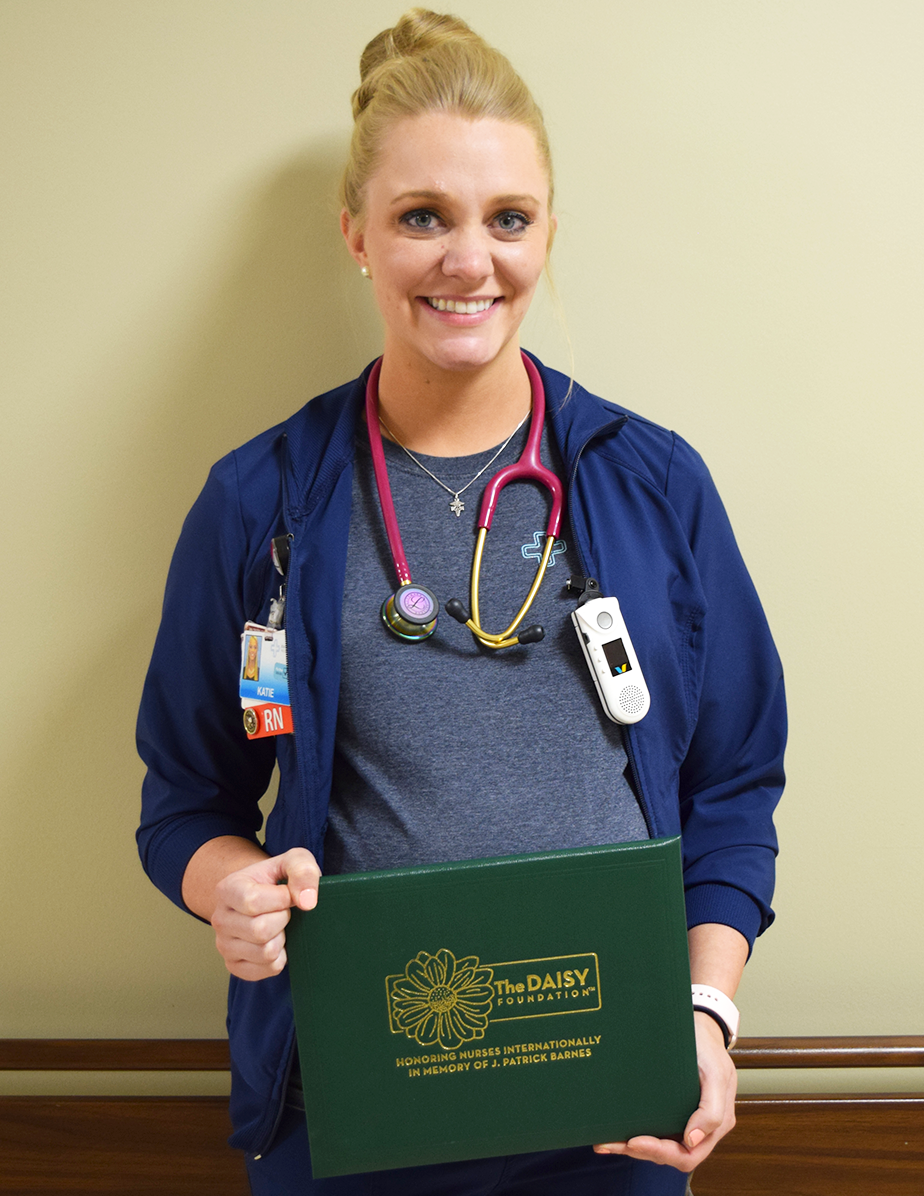CULLMAN, Ala. – Cullman Regional recently presented the DAISY (Diseases Attacking the Immune System) Award for Extraordinary Nurses to Katie Weber, R.N. – 5 East, for the extraordinary, compassionate nursing care she provided to one of her patients and his daughter.
