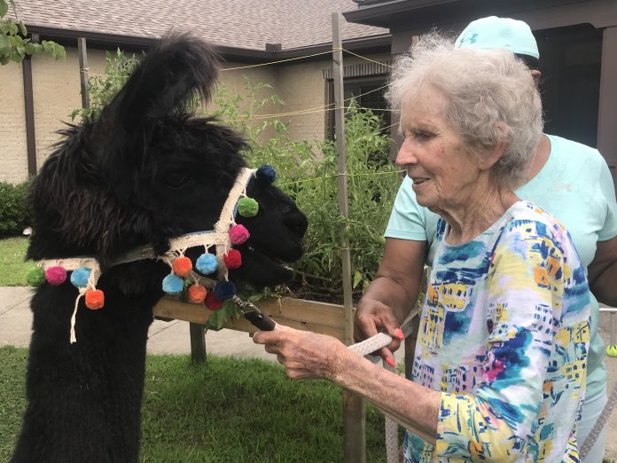 They laughed as Prince the llama made his rounds and joyfully reminisced about the other more familiar visitors. One resident giggled, “Well, we didn’t have any llamas! That’s for sure!” A miniature horse named Old Man, mother and son goats, Tulip and Cocoa and a bunny named Caramel were just a few of the animals featured in the petting zoo.