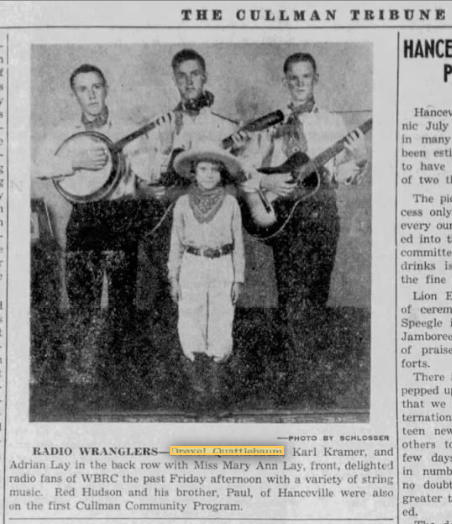 Drexel Fay Quattlebaum was born April 28, 1925 in Cullman County. His parents were W. M. and Etta Mae (Thornton) Quattlebaum of Cullman. By the age of 18, Drexel was living in Nashville. The talented musician was working for the Milo Twins at WSM in Nashville when he enlisted on July 14, 1943.
