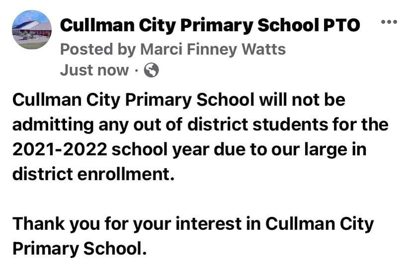 Cullman City Primary School not accepting out-of-district students