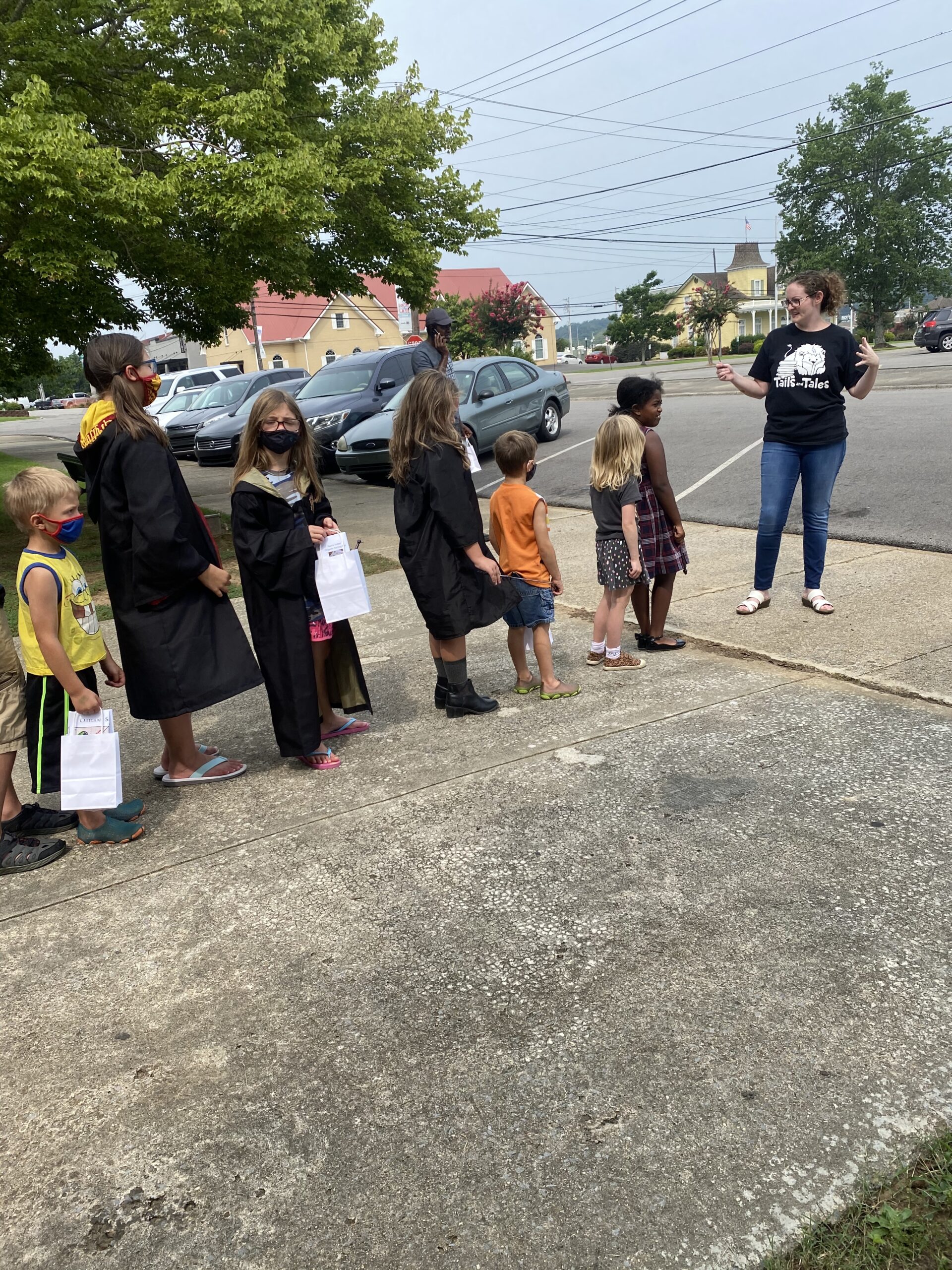 When the event’s primary organizer, Librarian Josephine Harrington, announced the start, the children lined up in their costumes behind her and marched down the sidewalk surrounding the library.