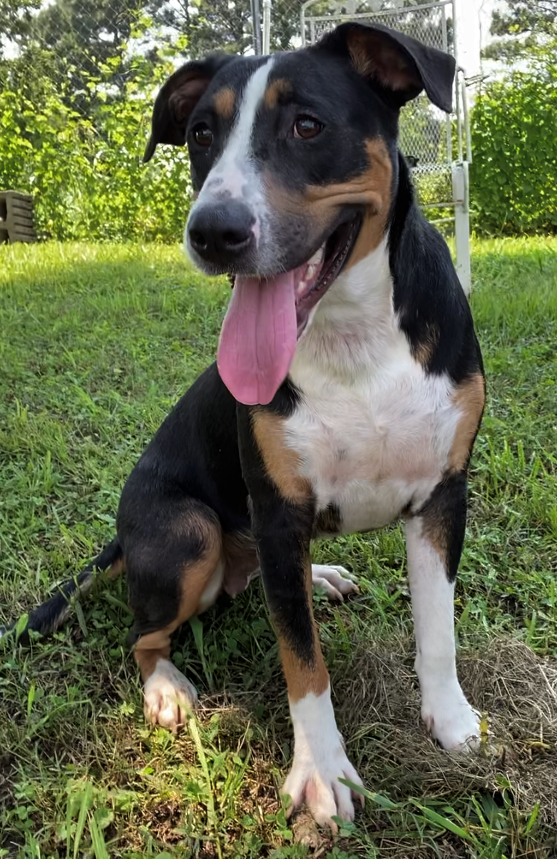 Ruffles is a 1.75-2-year-old Bernese Mountain dog mix. She is a lively medium-energy pet who cherishes the time spent with her and likes to stay close to her people. She’s a happy girl who is in love with life and who is also respectful of personal space. She is already savvy on her leash and, with patience, takes to new challenges well, such as learning about the refreshing water the kiddie pool offers! Ruffles is a therapy/companion dog!