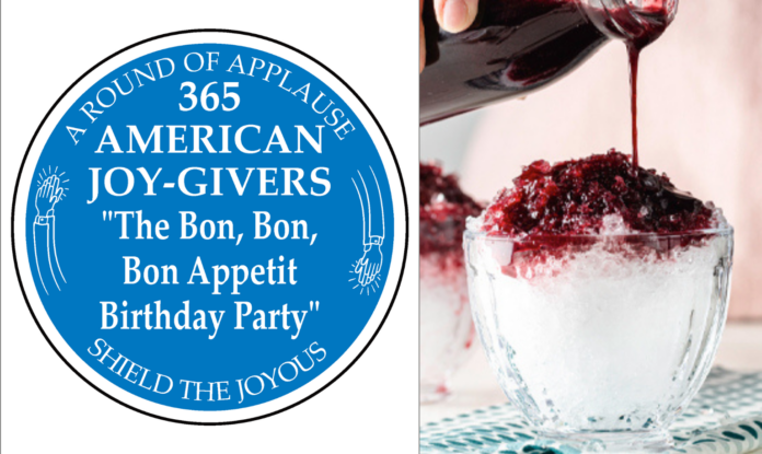 We are inspired to greater heights by each of the 365 American joy-givers celebrated in this series, but for “The Bon, Bon, Bon Appetit Birthday Party” we’re taking the tram 630 feet to the top of the tallest monument in the United States.