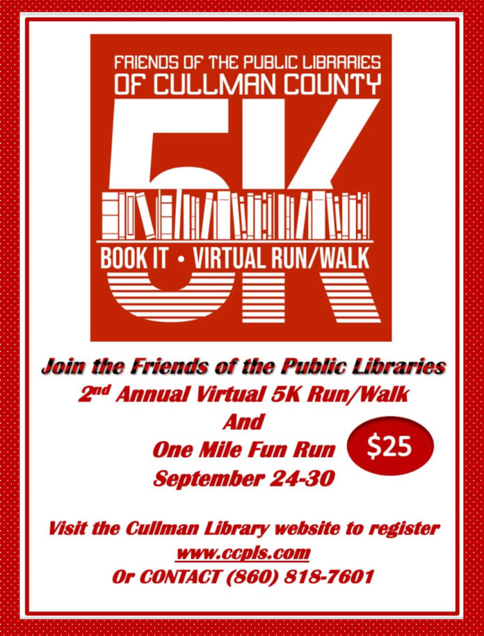 CULLMAN, Ala. – The Friends of the Public Libraries of Cullman County will be hosting their 2nd Annual Virtual 5K Run/Walk and One Mile Fun Run Sept. 24-30. This event will be held in support of the Cullman County Public Library System. There is a registration fee of $25, with online registration available at https://raceroster.com/events/2021/49647/2nd-annual-book-it-virtual-5k.