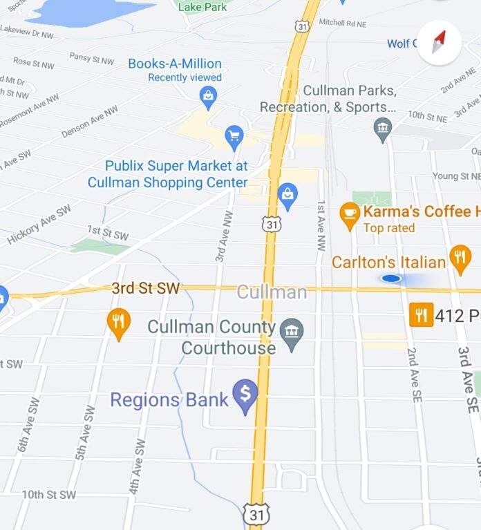 CULLMAN, Ala. – The Cullman Police Department responded to a two-vehicle wreck this past Thursday at 2:18 p.m. involving a Nissan Pathfinder and a Yamaha motorcycle in downtown Cullman.