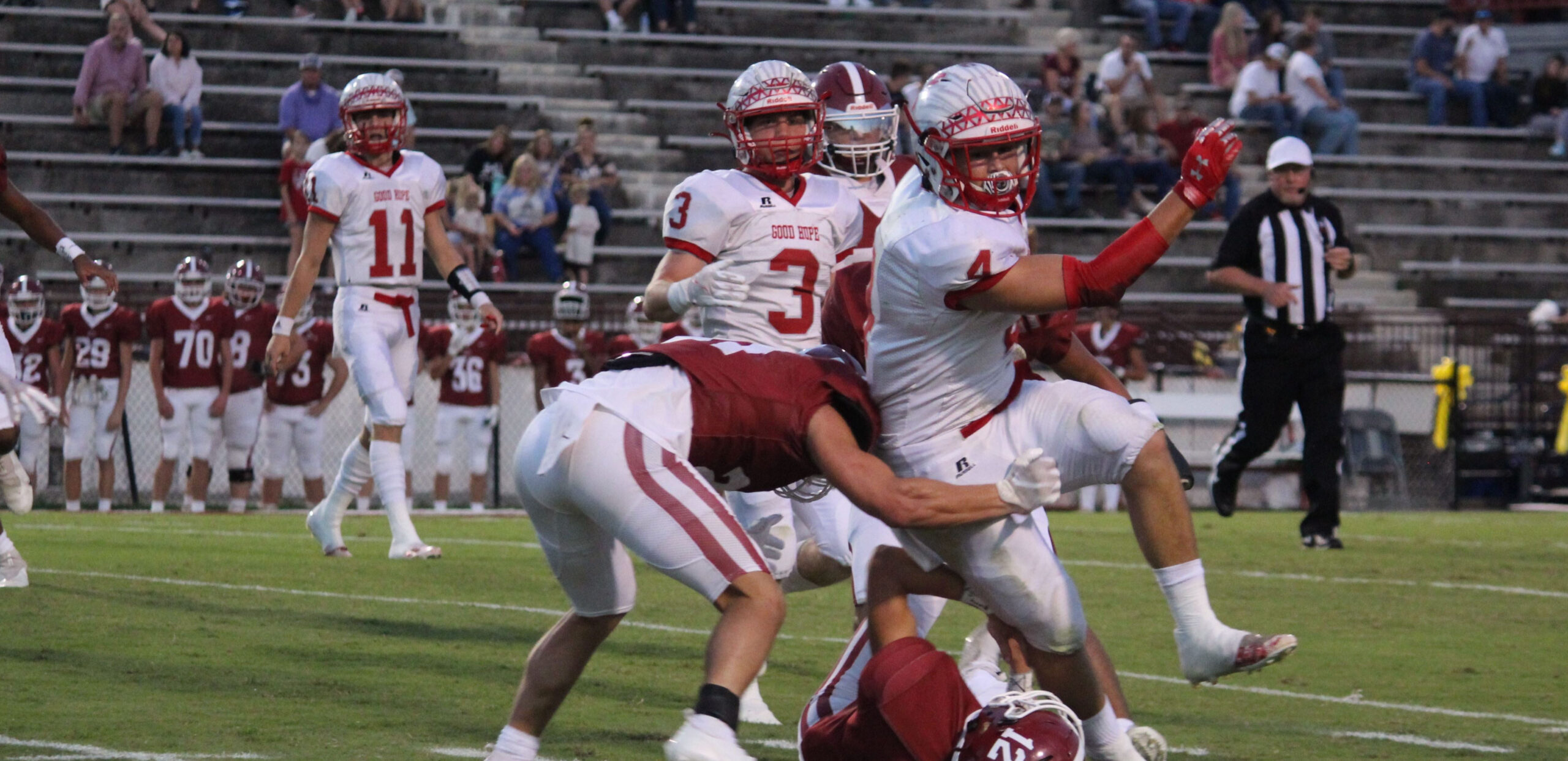 The Raiders offense took their first possession at their own 38-yard line and pushes it down the field for a touchdown when Malin scored from 5 yards out to put Good Hope in front 6-0 lead late in the first.