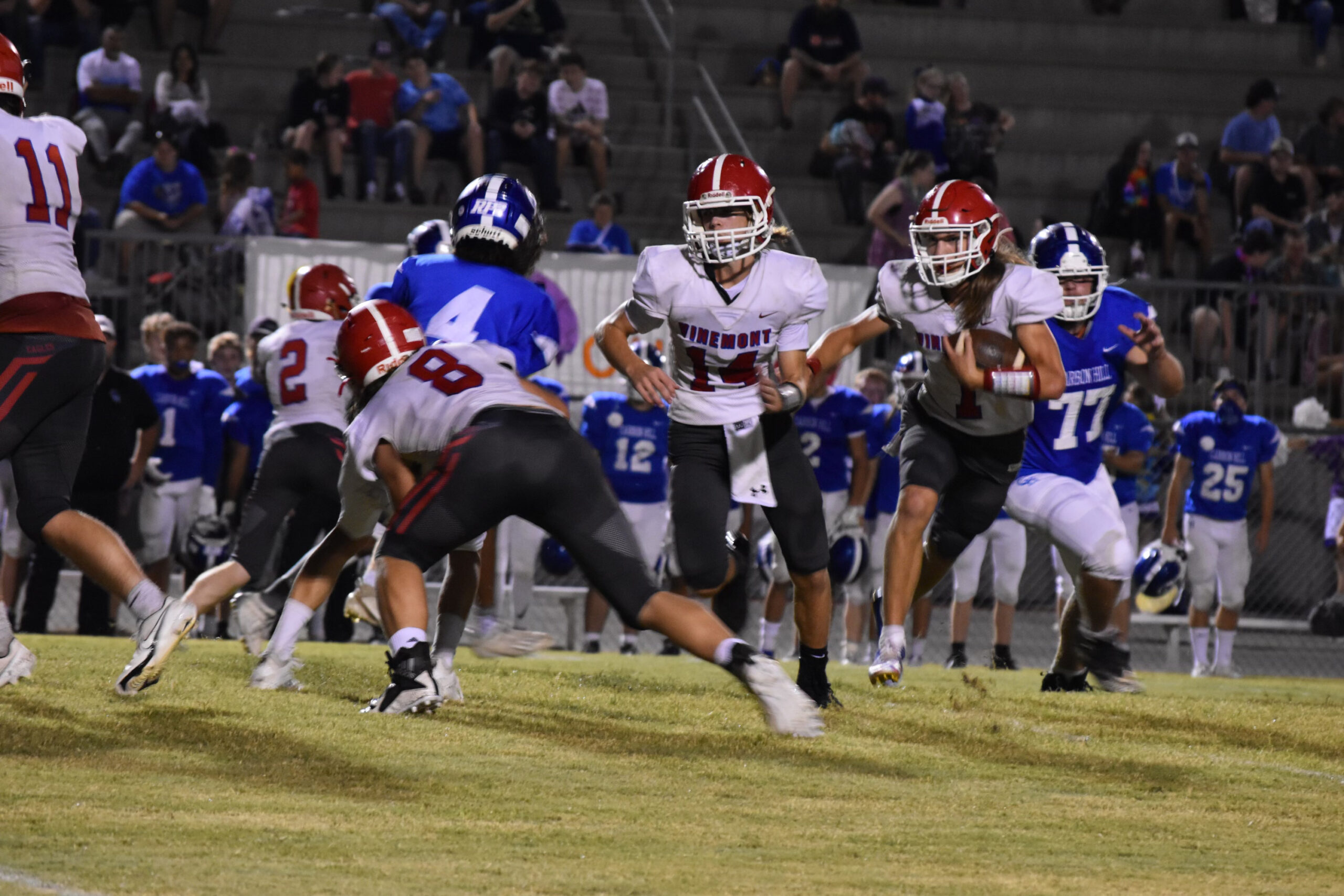CARBON HILL, Ala. — The Vinemont Eagles traveled to Walker County to take on the Carbon Hill in a region matchup and defeated the Bulldogs 30-28 to pick up their first victory of the season. The Eagles got the ball to start the game and had no problems marching right down the field to take an early led when Colby Miller scampered for a 34-yard touchdown putting the Eagles up 6-0 with 10:42 remaining in the opening quarter. The Bulldogs answered right back with a long touchdown run of their own to tie the game at 6 with 8:34 remaining in the first quarter.
