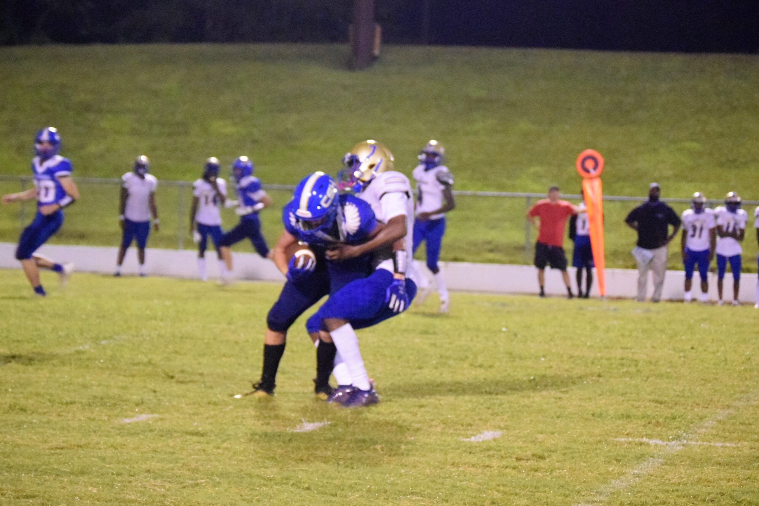 The combination of Hank Harrison and Joshua Winfrey helped Cold Springs get a first down after three plays, but a false start quickly brought their opening series to a halt as they were forced to punt. But the Eagle defense forced a punt of their own on its opening defensive series. After quickly getting another first down on a Harrison nine-yard run, they got stuffed on three straight plays and were forced to punt. The Yellow Jackets quickly took advantage of the short field as on just the second play of its series, they scored on a 35-yard run to make it an 8-0 score with 2:23 to go in the opening quarter.