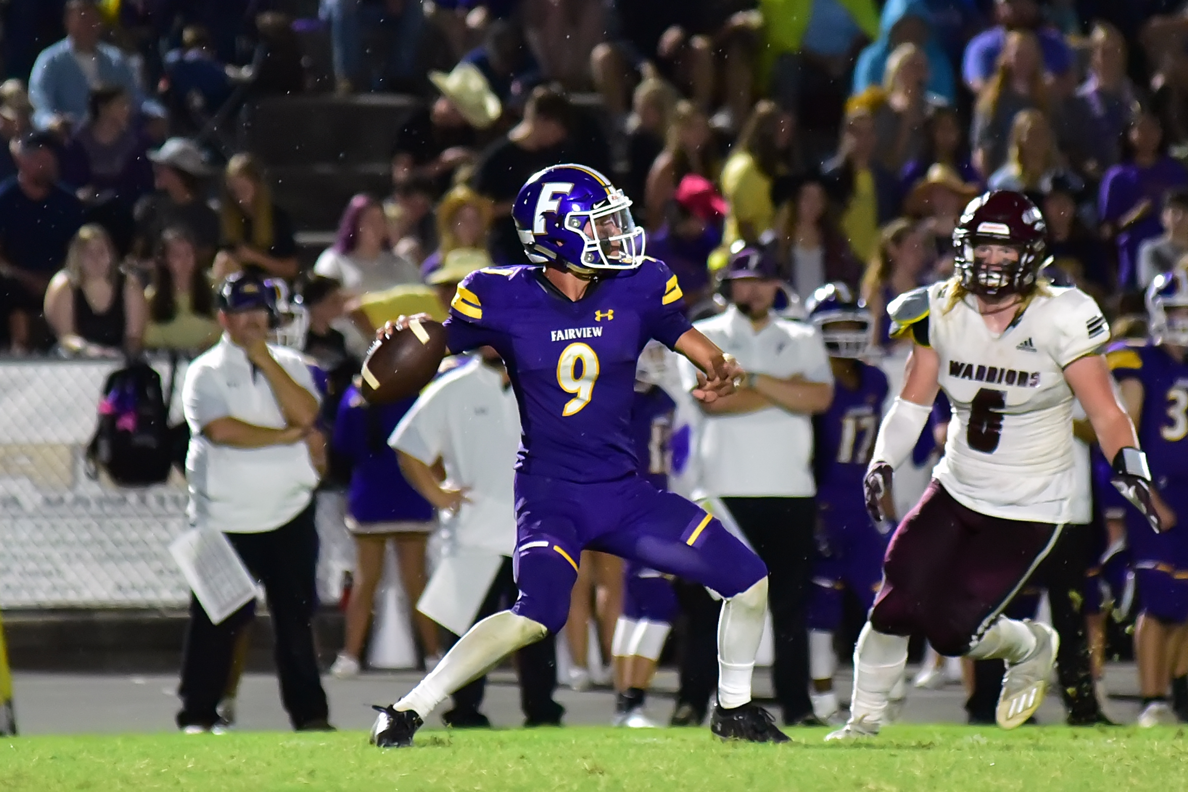 Receiving the opening kickoff, Fairview’s Eli Frost put the Aggies in great field position returning it all the way to midfield. Senior running back Tyler Simmons would rip off a big 28 yard run a couple plays later, followed by a Parker Martin 23-yard touchdown run on the quarterback keeper. Just when things couldn’t get worse for the Warriors, Fairview pulled a fast one when Martin faked the field goal and found Dalton Payne in the end zone for the 2-point conversion.