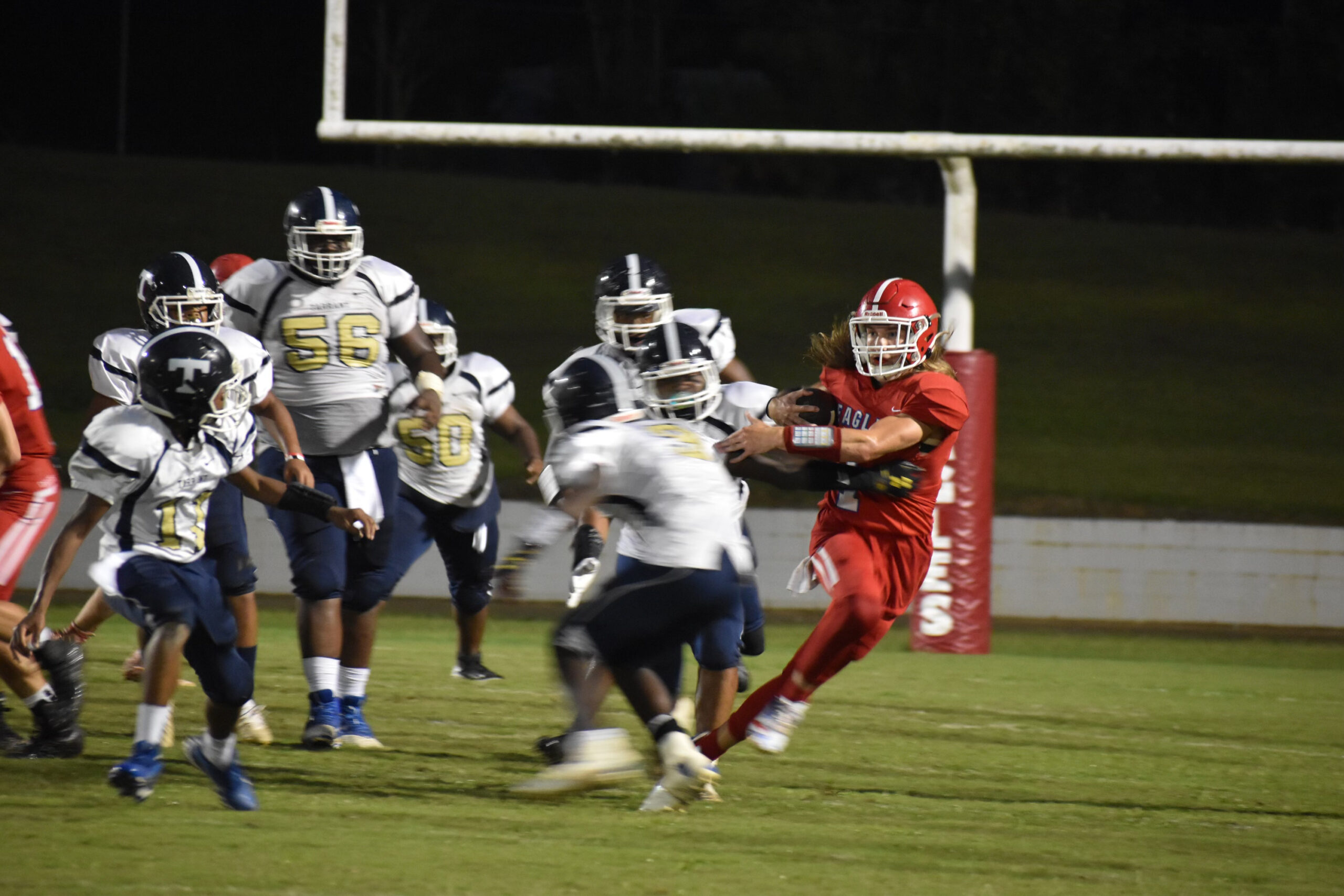 With 9:52 remaining until halftime, Miller scampered 36 yards for his fourth touchdown of the night putting the Eagles up 36-0. On Tarrant’s next offensive play, Austin Boudreaux scooped up a fumble and ran it back for a touchdown to push the lead to 42-0 with 9:34 remaining until halftime. With 4:34 left in the game, Diego Rodriguez tacked on a 9-yard touchdown run of his own to cap off a 49-0 victory for the Eagles.