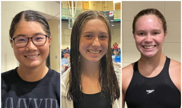 Cullman swimmers Ruby Hudson, Morgan Fuller and Madison Clements. (@CullmanHighSwim)