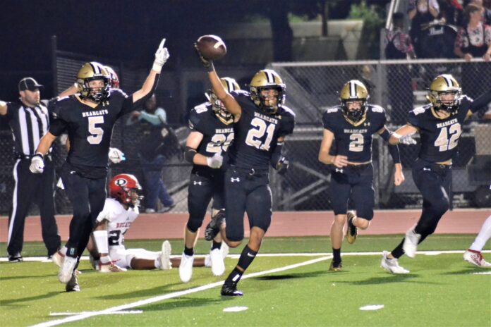The ‘Cats were in control for most of the final frame and after forcing the Red Raiders to turn the ball over on downs with less than three minutes on the clock, the game appeared to be over. That’s when a Decatur defended flew into Cullman’s backfield, intercepted a pitch and took it 70 yards the other way for a touchdown. After the extra point, the Red Raiders trailed just 17-14 with just under a minute remaining in the game. Decatur then recovered an onside kick to regain possession near midfield with 36 second on the clock and one last chance to tie things up. However, the black & gold defense kept the Red Raiders out of field goal range and Kay picked off his second pass of the night near the goal line on the game’s final play to ice a 17-14 win for the Bearcats.