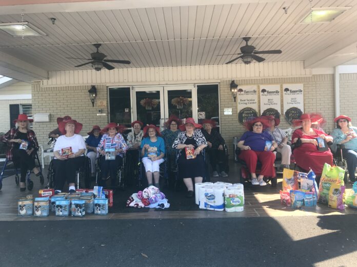 HANCEVILLE, Ala. – The ladies of the Hanceville Nursing and Rehab Red Hat Society (RHS) were all smiles Friday morning as they sat outside in their finest red hats. The ladies had spent the last weeks working on their latest community project – collecting items to donate to the Cullman County Animal Shelter. The items were delivered to the shelter by staff late Friday morning.