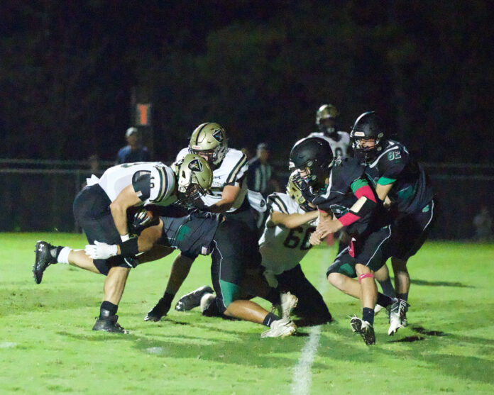 Holly Pond running backs Kadin Suryono and Andy Light got the Broncos headed in the right direction, driving the ball down to the Pirate 30-yard line but another interception cut the possession short.