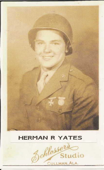 Herman Newton Yates was born March 12, 1924 in Cullman, County. His parents, Thomas Newton and Rosie C. Yates, resided at Route 8 in Vinemont. At the age of 18, Herman registered for military service with the United States Marine Corps and served during World War II.