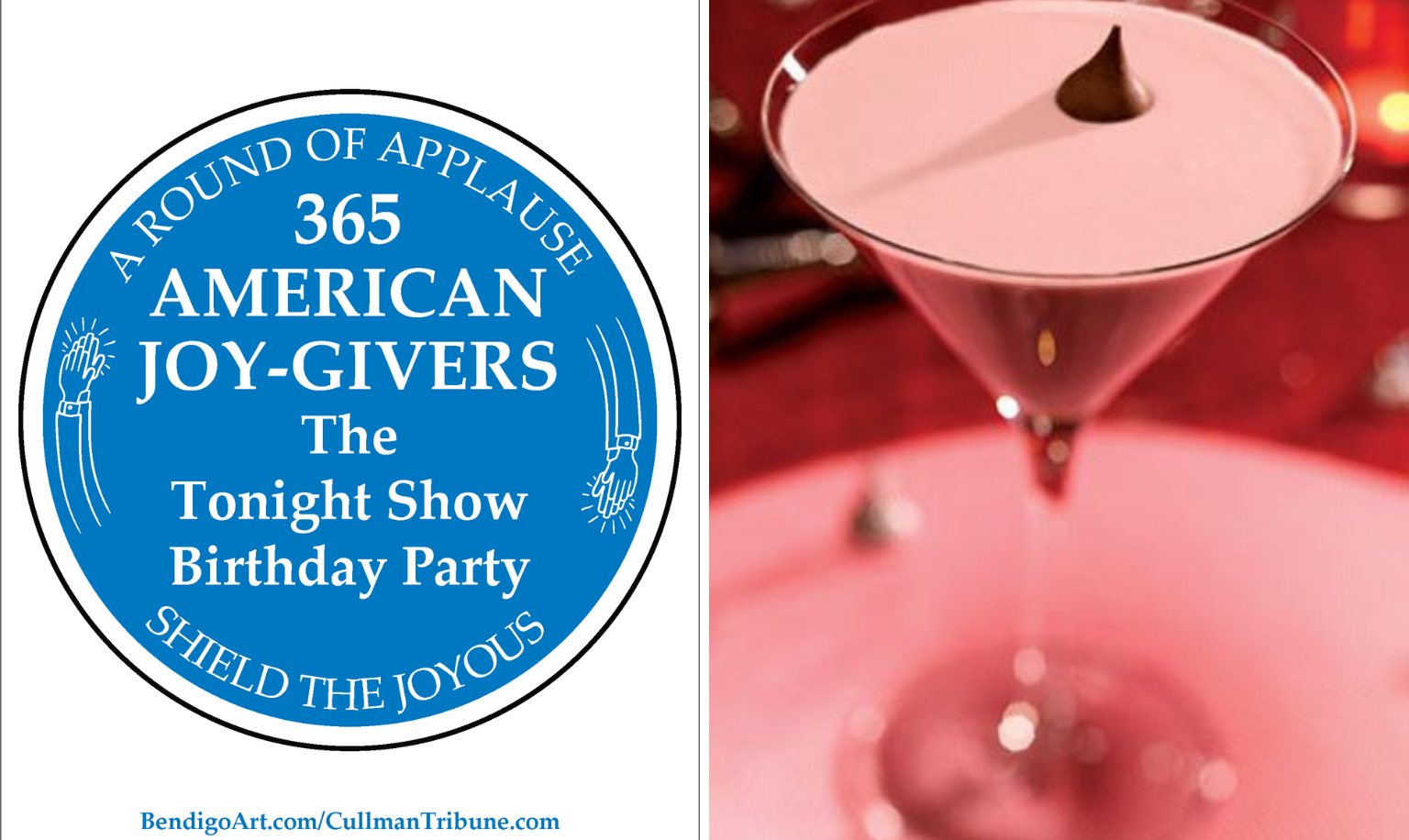 (Announcer): “From ‘Television City’ in beautiful Burbank, California—It’s ‘The Tonight Show Birthday Party’ with Johnny Carson and this week’s special, joy-giving guests: singer/songwriter Katy Perry, Tony Award and Pulitzer Prize-winning playwright, Moss Hart, New York comedy icons Fanny Brice and Fran Lebowitz, that ‘Family Guy,’ Seth MacFarlane and real life hero for America and the world, Dr. Jonas Salk, discoverer of the vaccine which effectively eliminated the scourge of poliovirus.”
