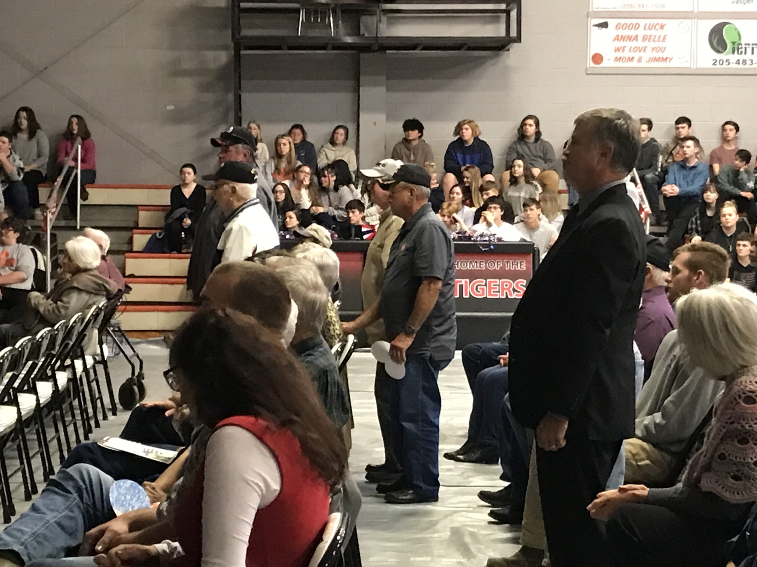 ARLEY, Ala. – Meek High School held its Veterans Day program this Thursday in the high school gym. Principal Allan Henderson opened the event with a statement to the veterans, saying, “We can never say enough for your service in war and in peace and who unselfishly placed their lives on the line for our freedom. Thank you and God bless you.”