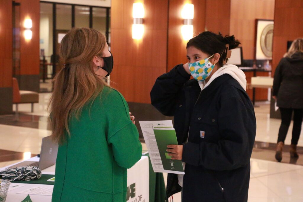 Helen Alcantar, a freshman from Remlap, is completing her general studies courses at Wallace State and plans to transfer elsewhere for nursing school. She spoke with a UAB representative at the event, which was held at the Bailey Center lobby.