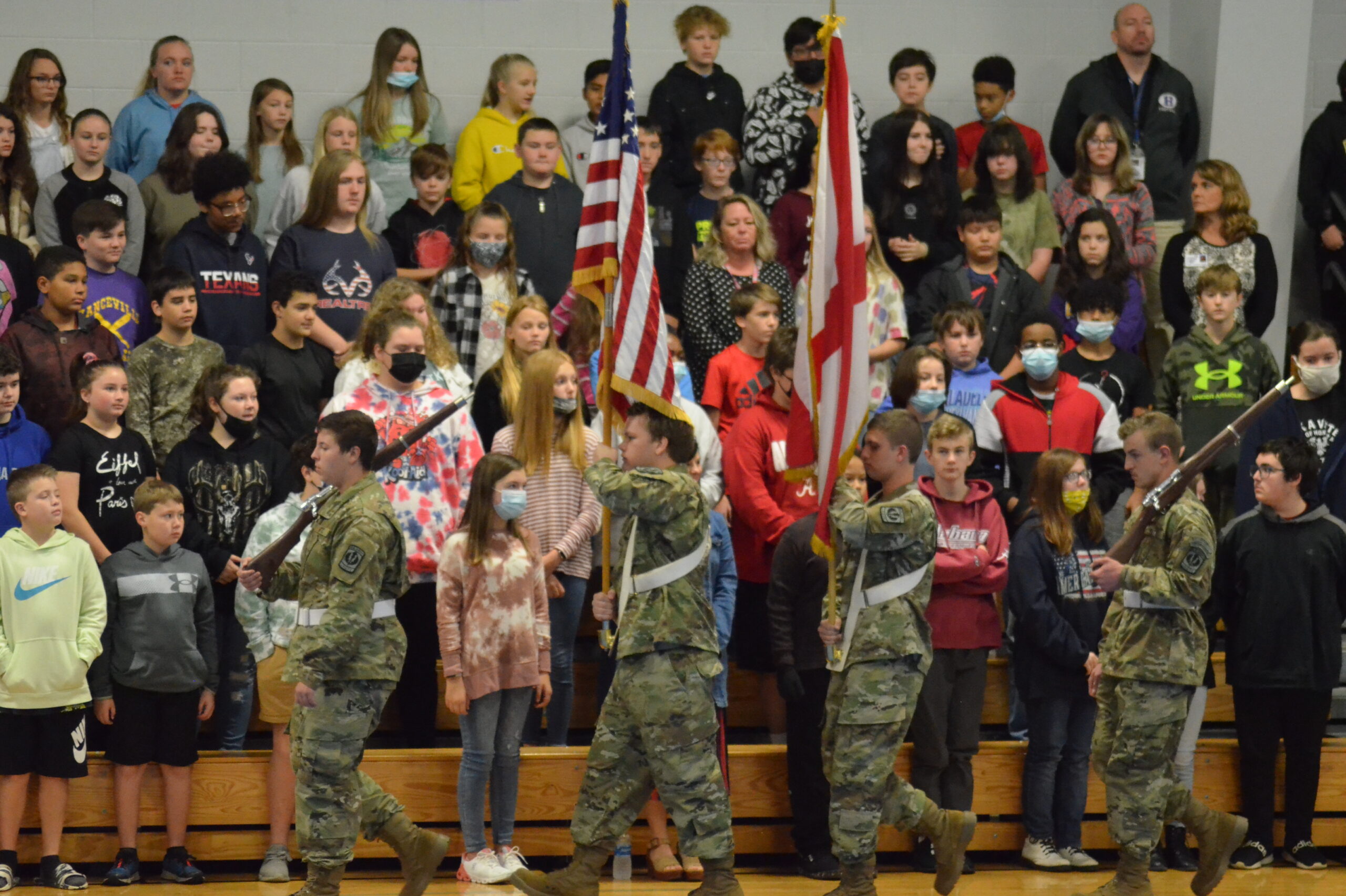 After an introduction from Principal Daniel Wakefield, Isaiah Carnell provided an invocation, Hanceville’s JROTC presented the colors and Lyla Kate Leusby sang the National Anthem to get things started. Jessica Marshall led the crowd in the Pledge of Allegiance and Zach Campbell spoke for a few moments about the meaning of Veteran’s Day. The band then played the “Veteran’s Salute”, going through the different songs associated with each branch of service and giving veterans in attendance an opportunity to be recognized.