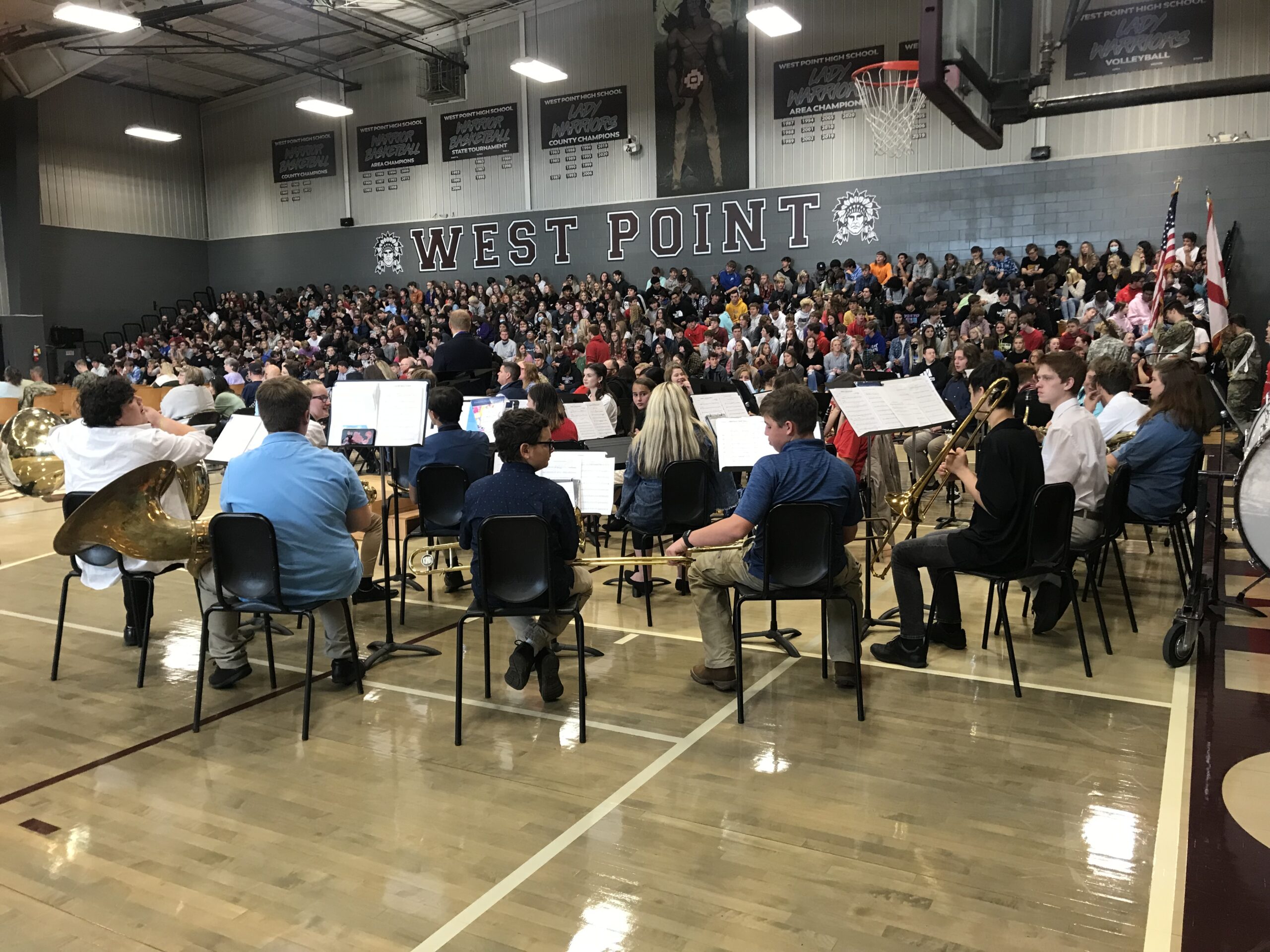 WEST POINT, Ala. – West Points’ Jim Boyd Gym was packed Wednesday morning with students excited to showcase their prepared songs and readings for the veterans in attendance for their Veterans Day program, which was predominantly student lead. Student council president Isaac Hoffpauir gave the opening statement, the Junior ROTC presented the colors and the West Point High School Band played the National Anthem. A welcome was also given by eighth grader Jaelyn Faulkner.