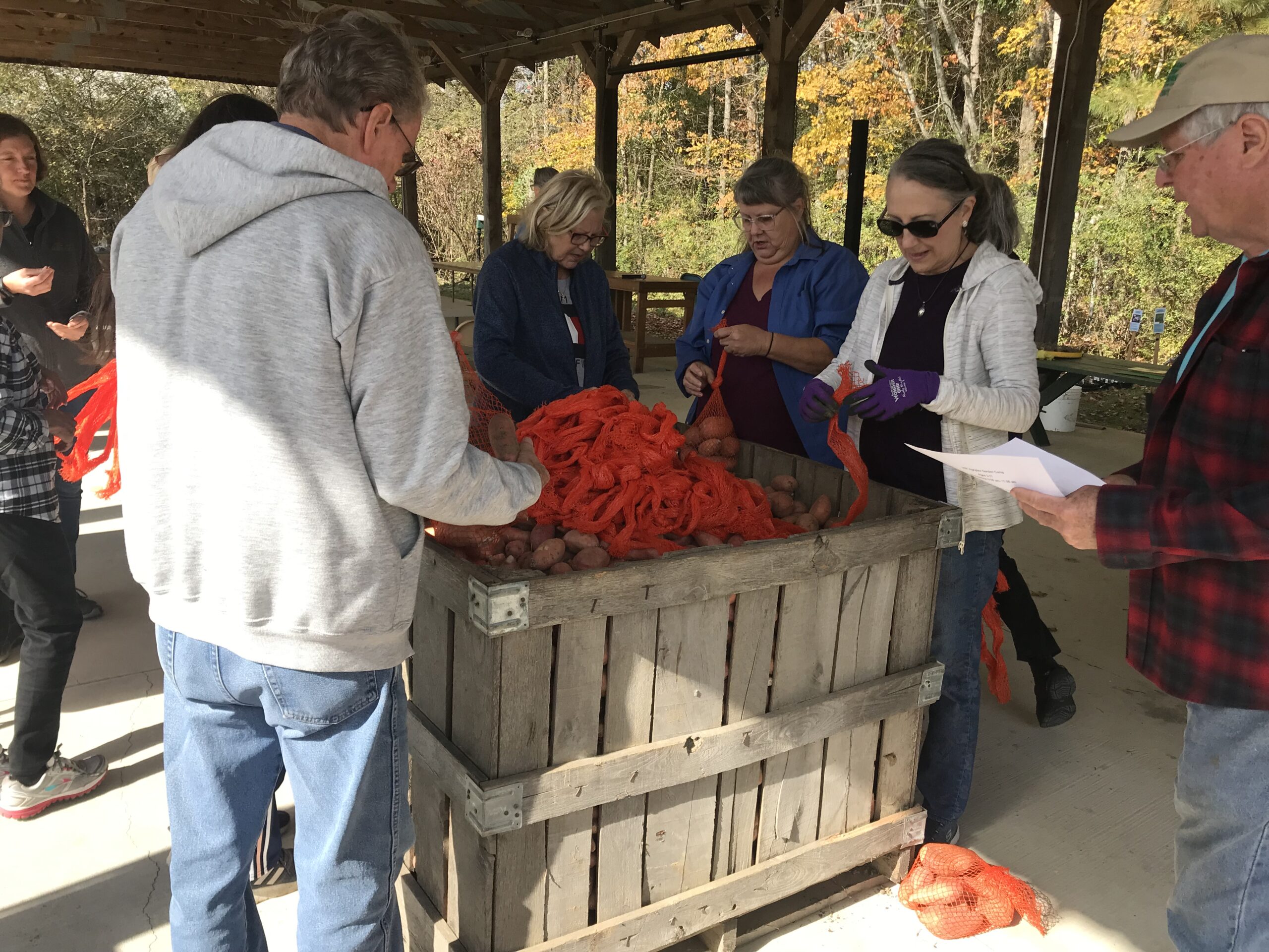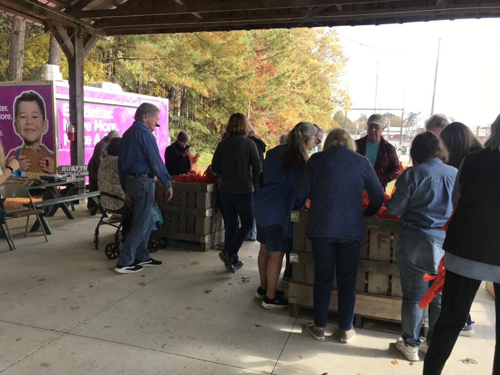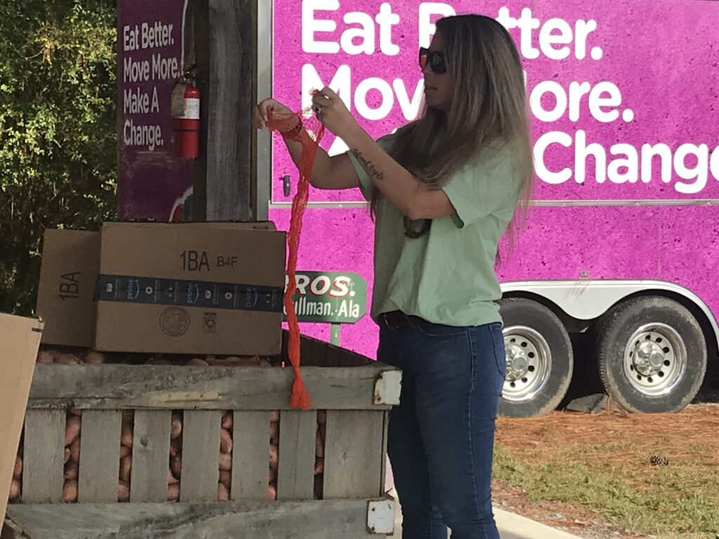 Adrienne thanked the Master Gardener’s for having her and explained, “These sweet potatoes were donated by a local farmer here in Cullman, Clark Haynes, who is just amazing to us, he plays a big part in what we do. These are sweet potatoes that he probably wouldn’t be able to sell.” Standridge further explained that farmers often must discard potatoes that are too small or not uniform. “What Clark does and several other farmers in the state of Alabama do, is they let us come in and grab these, what we call ‘rescue’ that food so it doesn’t go to waste. Then, we are able to help end hunger in our communities by contacting feeding agencies, soup kitchens, church pantries. It also helps to offset their costs. They can spend their money on other things they need. But the people receiving the food can have some nutritious, fresh produce instead of just always the canned food and the dry stuff.”