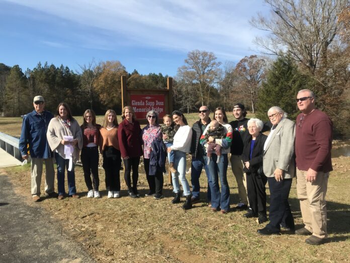 GOOD HOPE, Ala. – On Wednesday, the new Glenda Sapp Doss Bridge on Doss Road in Good Hope was dedicated to Jack Doss’ late wife. The old bridge, in the same location, was a narrow, dangerous, one-lane bridge and did not have guard rails. The bridge was on Jack Doss’ property who gave the strip of land to the city of Good Hope for the creation of the new bridge.