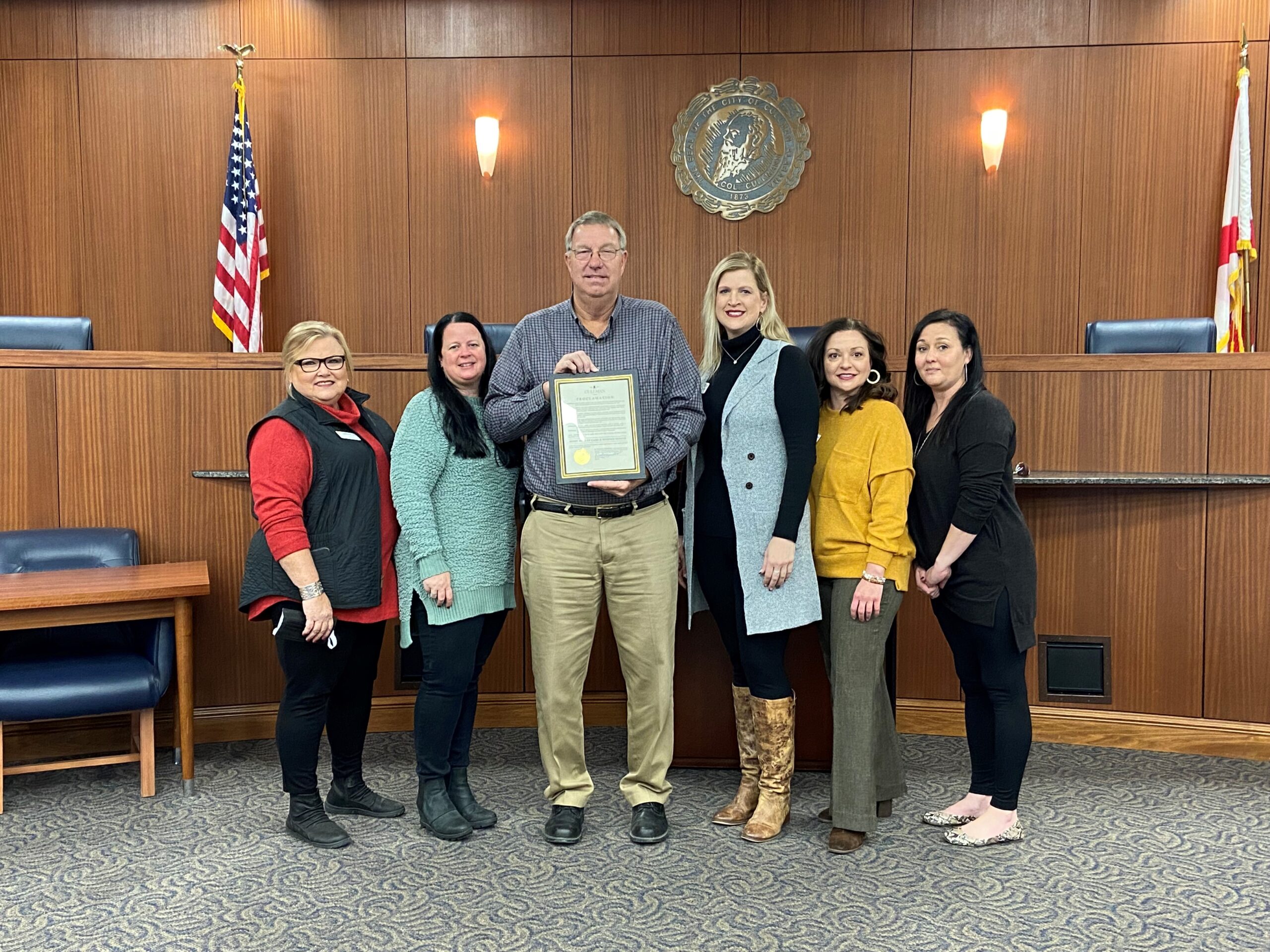 Representatives from Comfort Care Home Health (comfortcarehomehealth.com, 256-841-4433) and Comfort Care Hospice (comfortcarehospice.com, 256-739-2588) accepted the proclamation from Mayor Jacobs. Those representatives included Shannon Griffin, Emily Hall, Terri Woods, Nickie Bailey and Debi Murphy.