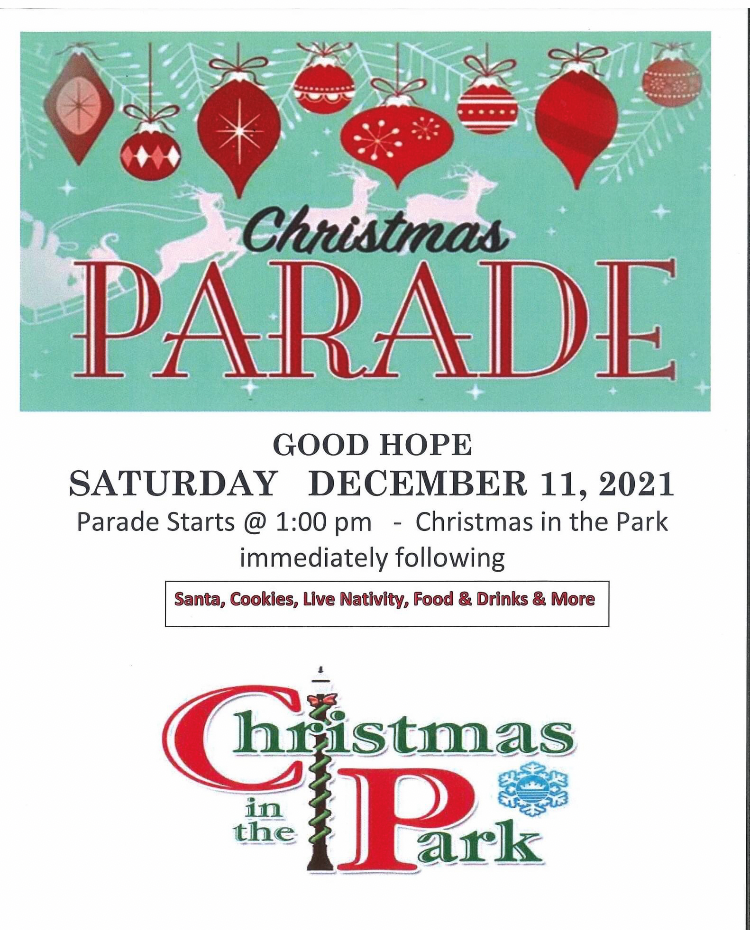 GOOD HOPE, Ala. – Good Hope will be holding it’s annual Christmas parade and Christmas in the Park on Saturday, Dec. 11 beginning at 1 p.m. The parade will start at the road going into the football field at Good Hope High School. Lineup will start at 11:30 a.m. The parade will end at Good Hope Municipal Park for Christmas in the Park where there will be a live Nativity scene and pictures with Santa. There will be chili, hotdogs and cookies served at the park. The entry form to participate in the parade is on the City of Good Hope’s Facebook page and must be turned in by the day before the parade, Dec. 10.Â