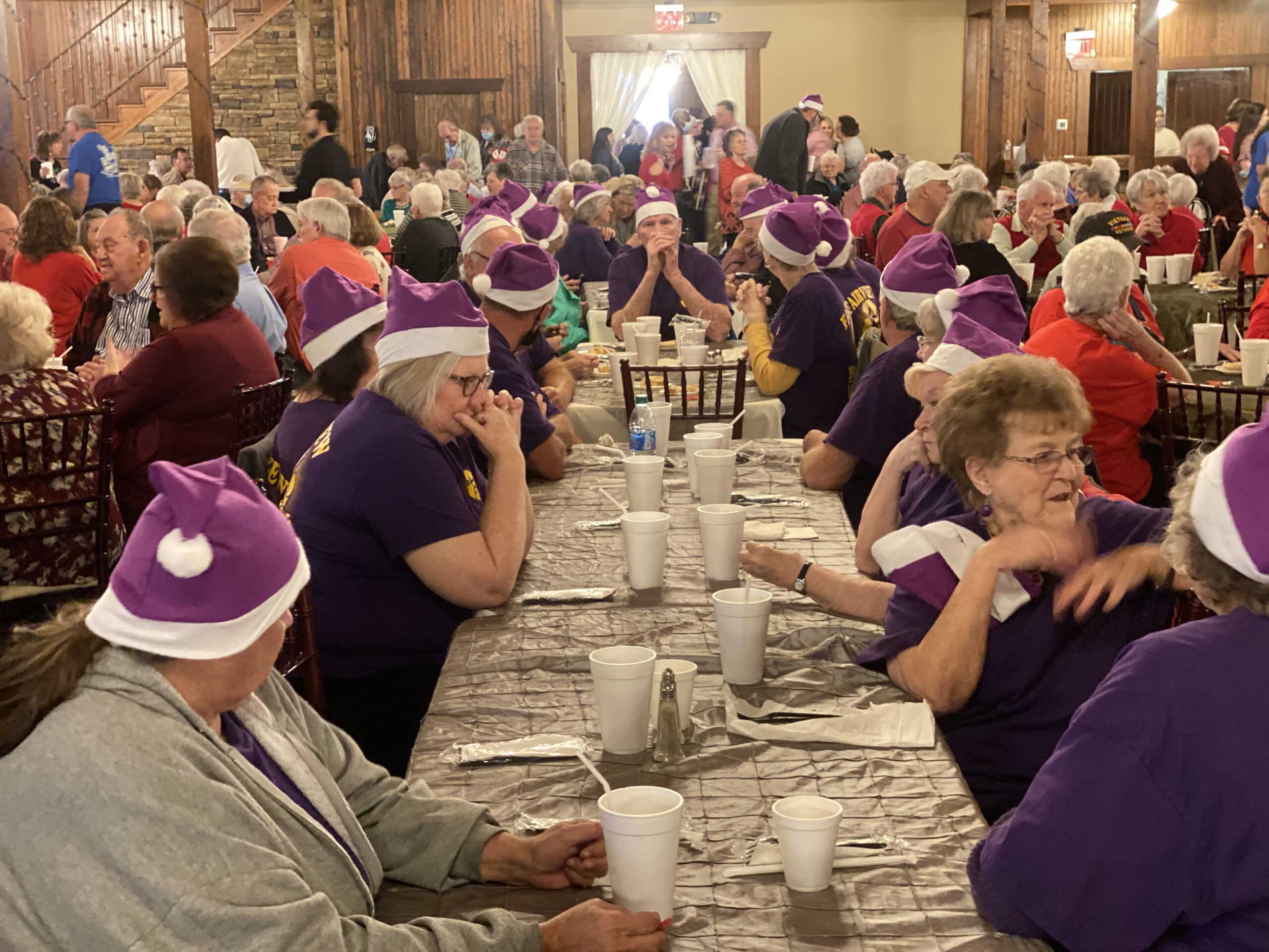 CULLMAN, Ala. – The Cullman County Senior Center held its Christmas party at Stonebridge Farms Friday for the first time in two years. The performing band was “Behind the Times.” The room was packed with over 800 seniors and community officials. The Stonebridge staff provided pie and drinks before the director of the Commission of Aging Stephanie Lawson welcomed everyone.