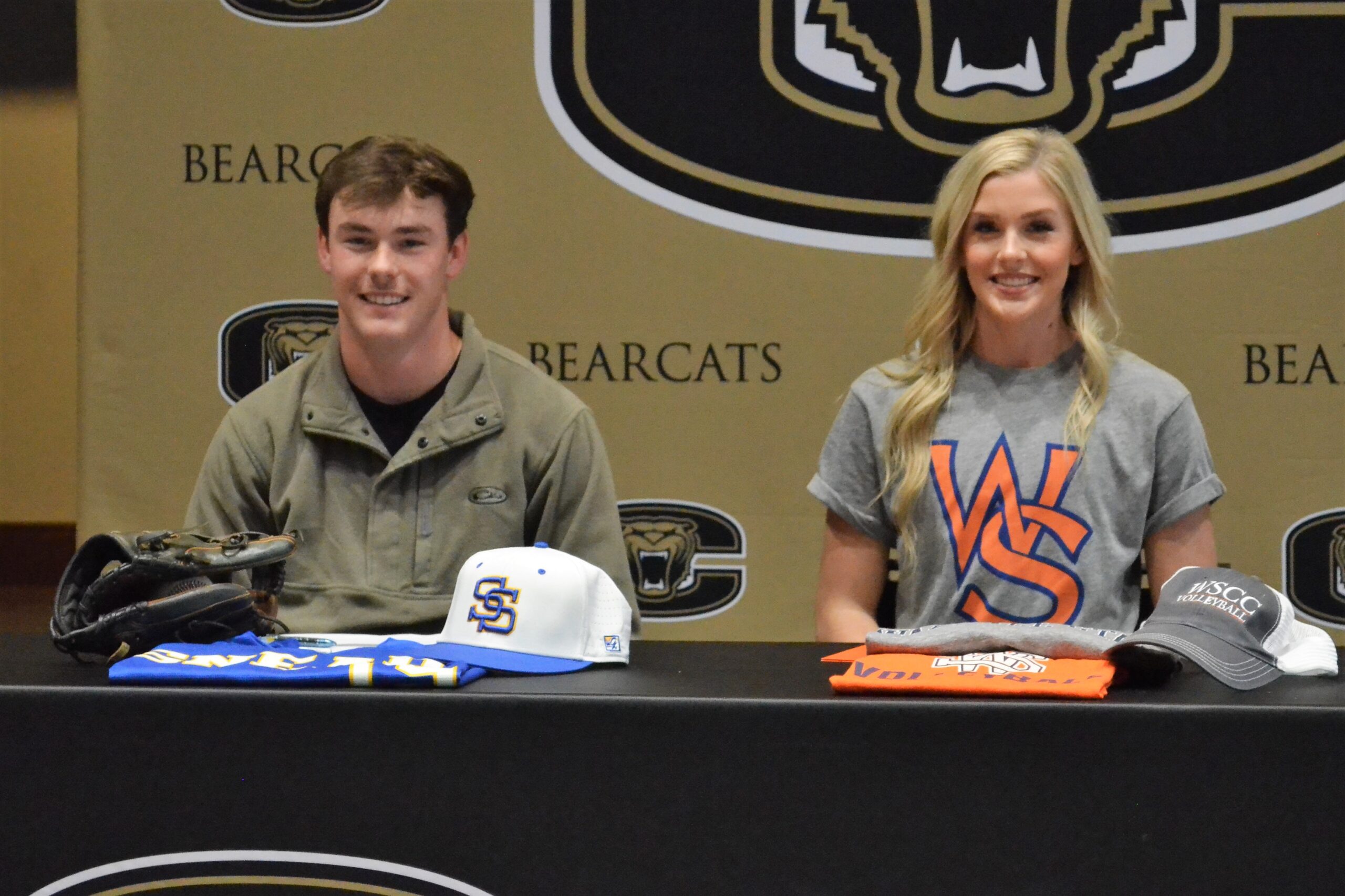 CULLMAN, Ala. – Cullman High School’s Tillman Hall was packed with friends, family, teammates, and coaches Thursday afternoon to celebrate a pair of Bearcats taking the next step in their athletic and academic careers. Cullman baseball standout Hayden Stancil will be taking his talents to Snead State after his senior season and Lady Bearcats Volleyball star Gracie Barksdale will head down the road to play for Head Coach Randy Daniel and the Wallace State Lions.