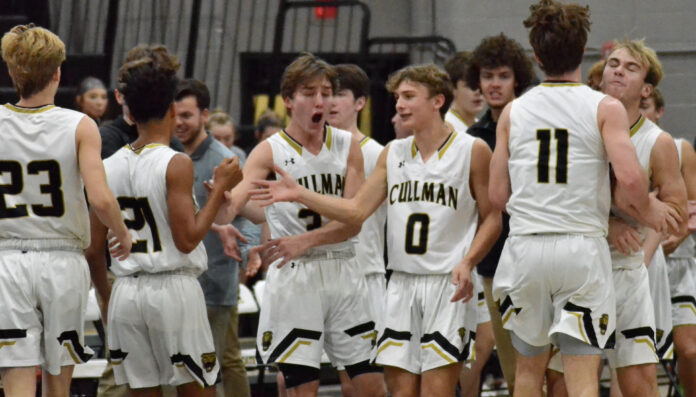 Tucker Gambrill drilled a three from the left corner to push Cullman’s lead to 14-7 early in the second quarter, but a Black Bear run made it a 14-12 game. Kase Nixon and Gambrill each knocked a three to increase the Bearcat lead to 20-12 and baskets by Tucker Cagle and Sharpe made it 24-17 at the half.