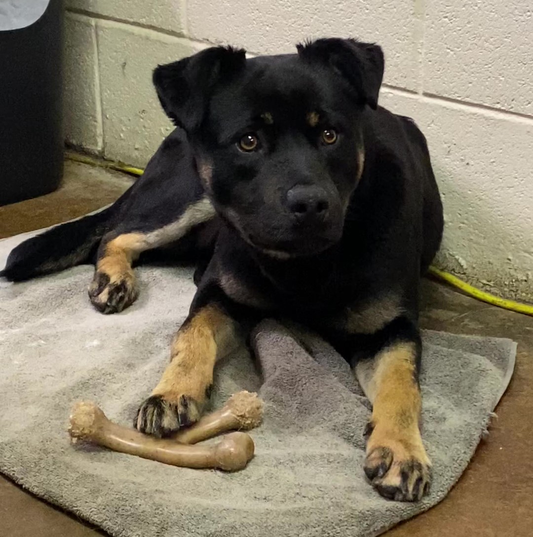 According to Ruttkay, Carl is an approximately 1.5-year-old Mini Rottie. He is a medium-energy pal who is known to be respectful and the picture of politeness. He loves to show his love to his people by scooting up close and extending his paw to be held. He finds delight in his chew toys and has an expressive face that makes him an endearing fellow who can easily make new friends.