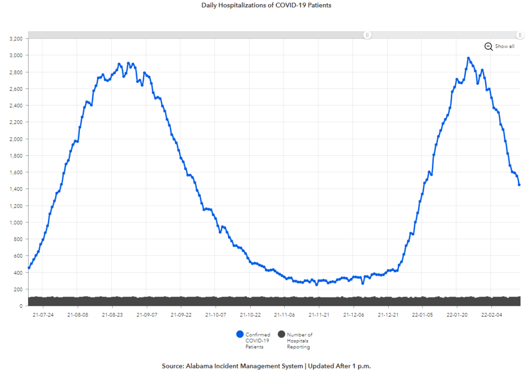 Below is the Alabama Department of Public Health data on hospitalizations statewide.