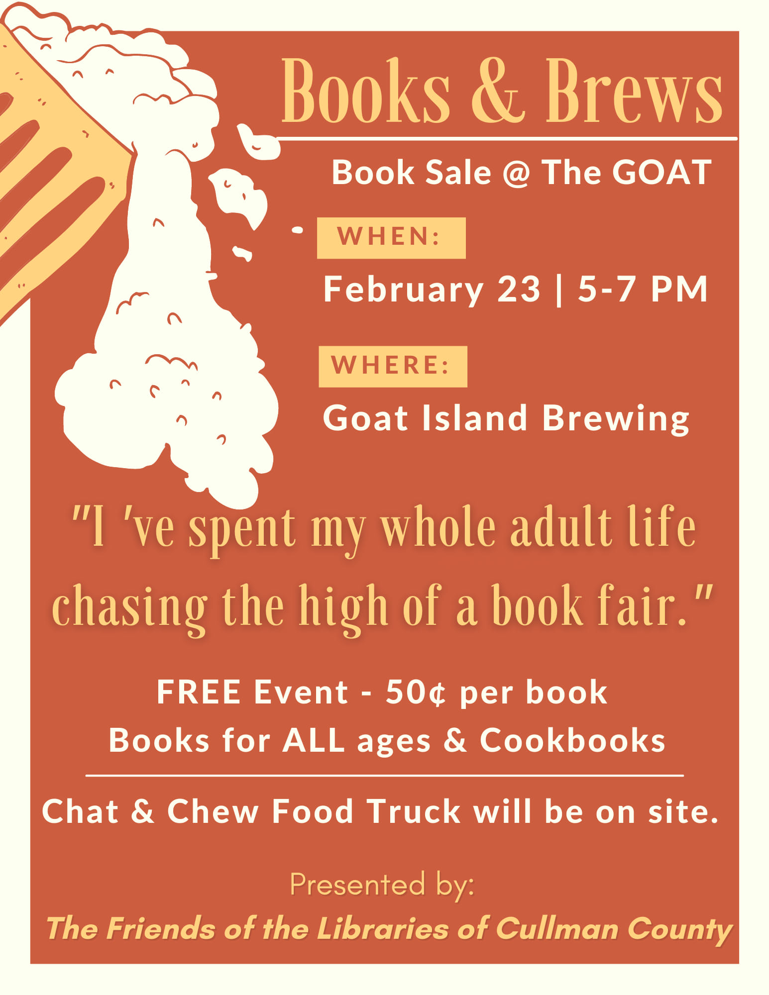 CULLMAN, Ala. – The Friends of the Libraries of Cullman County will be hosting a Books and Brews book sale at Goat Island Brewing on Wednesday, February 23 from 5:00 p.m. – 7:00 p.m. The books are donations that were made to the Cullman County Public Libraries and will be priced at 50¢ each. The Chat and Chew Food Truck will also be on site. The proceeds will go toward funding events planned by The Friends of the Libraries of Cullman County.