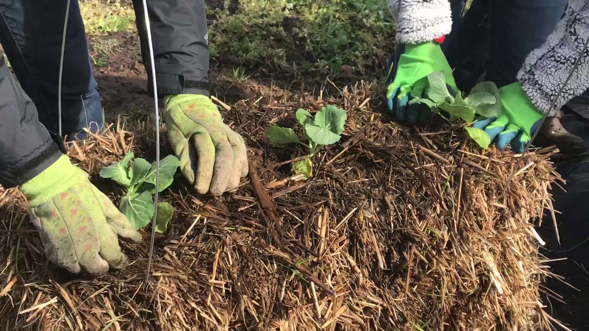 To begin, gardeners should buy a wheat straw bale. According to Carroll, wheat straw works best because pine straw does not break down enough and hay bales may contain more weed seeds.