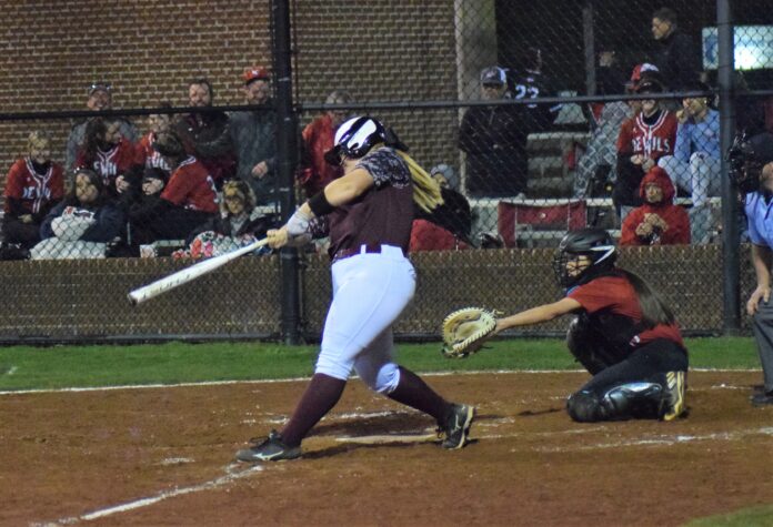 The Lady Red Devils struck first in their opening inning as a leadoff single, later followed by a one-out RBI single, gave them a quick 1-0 lead. West Point answered right back in their half as Macayla Wilkins reached on a one-out error and Carlie Wilkins hit a two-run home run over the center field wall to give the Lady Warriors a 2-1 lead. Carlie Wilkins struck out the side in the top of the second and West Point couldn’t add to their lead as they went into the top of the third inning up, 2-1.