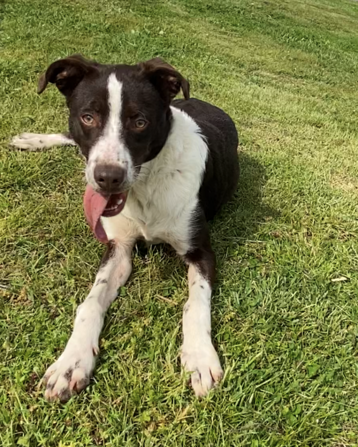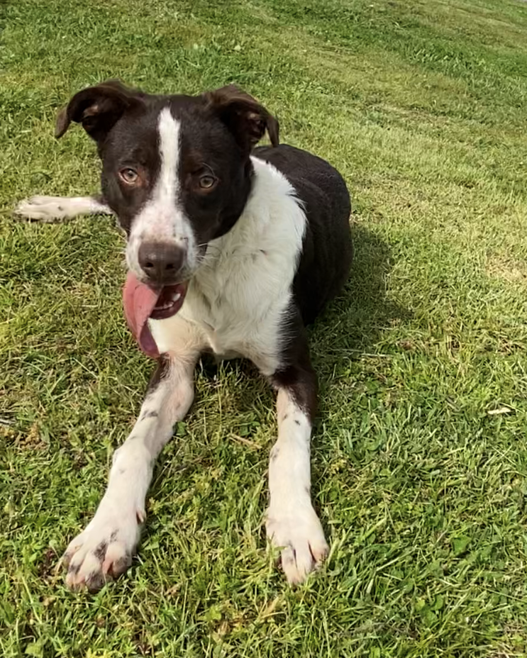 According to Ruttkay, Penny is a 1-year-old Boykin Spaniel/Border Collie mix. This medium-energy gal absolutely thrives in the presence of her people, but is still able to respect your personal space. One of her favorite pastimes is splashing in the kiddie pool, as is quickly gaining skills with walking on her leash.