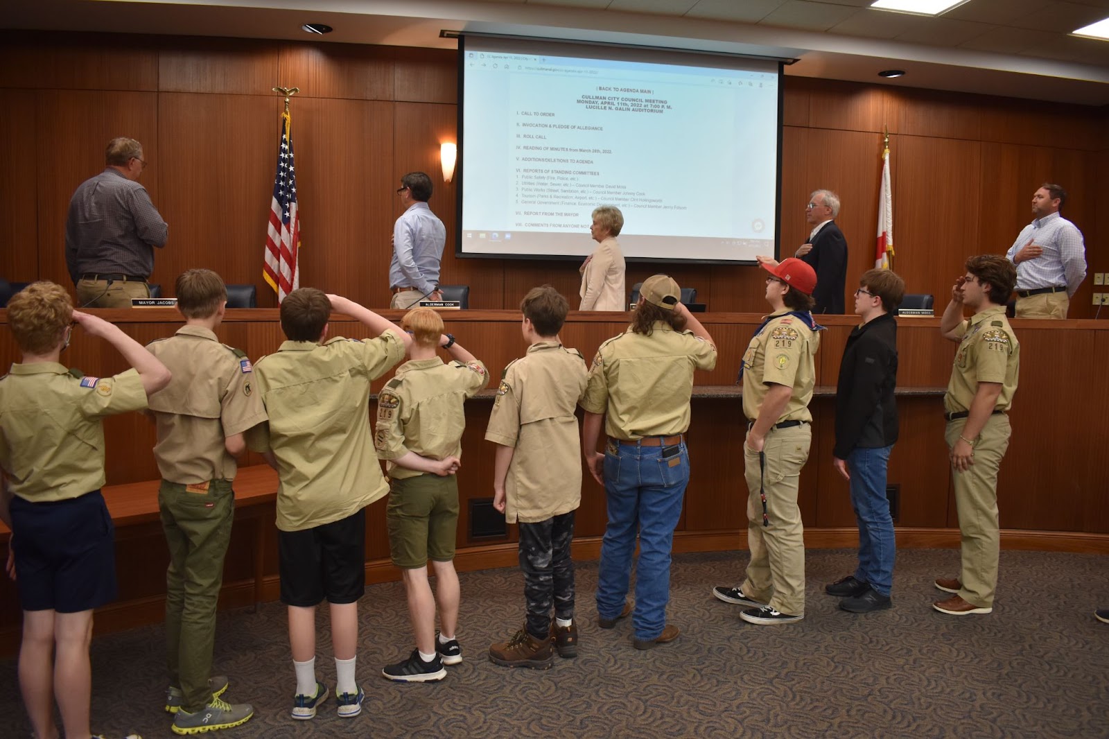 CULLMAN, Ala. – The Cullman City Council on Monday evening welcomed Boy Scout Troop 219 from First United Methodist Church and said the Pledge of Allegiance under the direction of Scout Jon Haynes, before getting down to business, approving resolutions to move closer to a $2,000,000 plan for improvements and expansion at the Cullman Regional Airport. The council approved an obligation warrant for $2 million for construction of a 100 by 100-foot hangar “and the purchase of property,” naming Peoples Bank as the bidder offering the lowest interest rate. The council also approved a contract with Goodwyn, Mills and Cawood for engineering services at the airport.