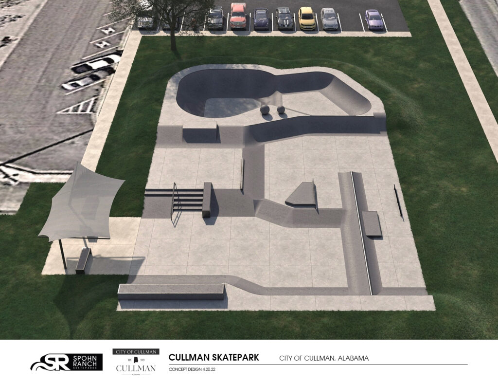 Mayor Woody Jacobs expressed his approval with the skatepark plans as well, saying, “Allowing our skatepark community to have access to a fun and safe skatepark really speaks volumes to the growth and variety of Cullman’s parks. We have sought out the best designers and engineers for this project and I’m excited to see this in development.”