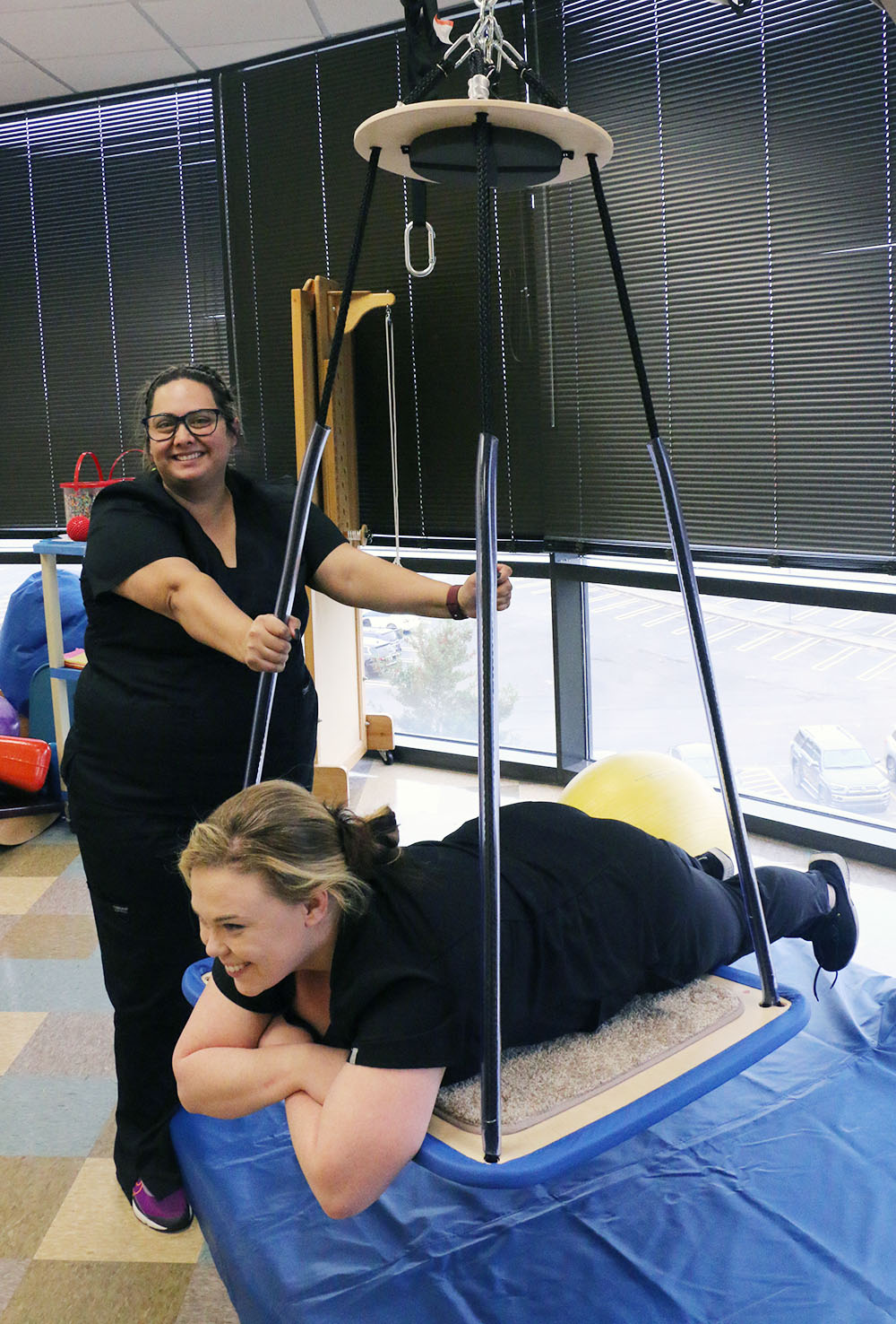 Sensory integration is the philosophy behind both the sensory room and a pediatric swing, said OTA Program Director Laura Smith.
