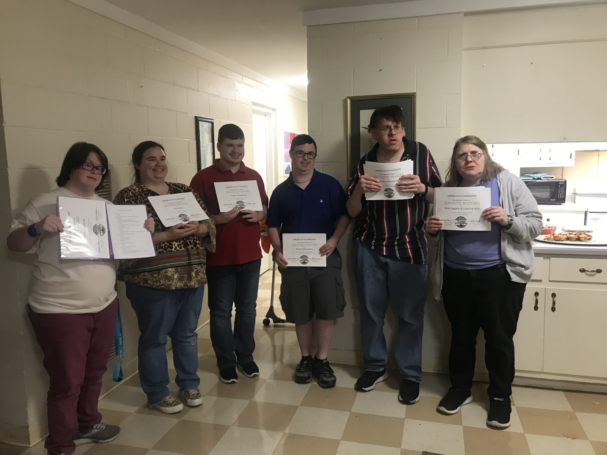 She discussed the goals of the classes, saying, “We wanted to provide a service that could help an individual in our program in two ways through the cooking class—one, becoming more independent in preparing meals for their self in a safe way; two, we are looking for hidden talent for employment. The first 1-2 classes consist of learning what the participants already know or do not know about cooking and being in the kitchen. Also, teaching them kitchen basics, reading and understanding recipes and, most importantly, teaching them kitchen safety before starting to cook. Then it progresses in difficulty culminating with them cooking a meal for their family.”