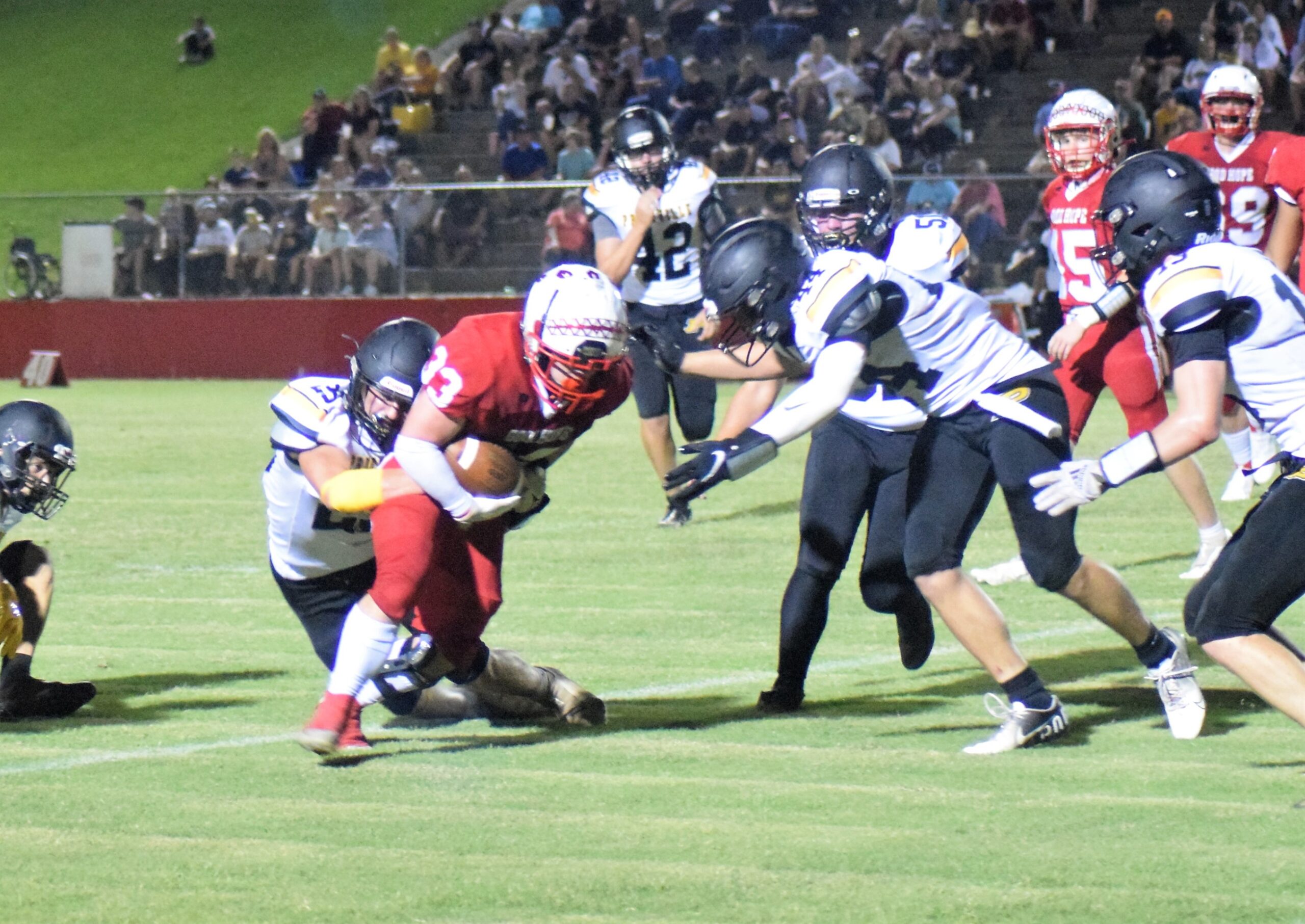 Jones carried the ball 19 times for 72 yards and a touchdown. O’Neil added 61 more on seven carries. Whatley finished 9/13 for 93 yards and an interception. Black completed a pair of passes for 37 yards and the touchdown pass to Keef. Clements recovered a fumble while Bartlett finished with an interception for Good Hope.