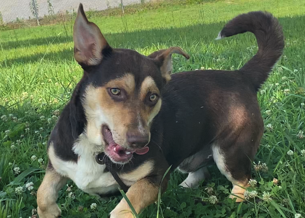 According to Ruttkay, Henry is an 2.5-3-year-old Corgi/Basset mix. He is a medium-energy joyful soul who loves to dance, shining in the company of his people. He likes to stay close, but also enjoys a new exciting and challenging adventure! He loves to take walks in the yard and is curious about the kiddie pool. He will even ask you to go outside!