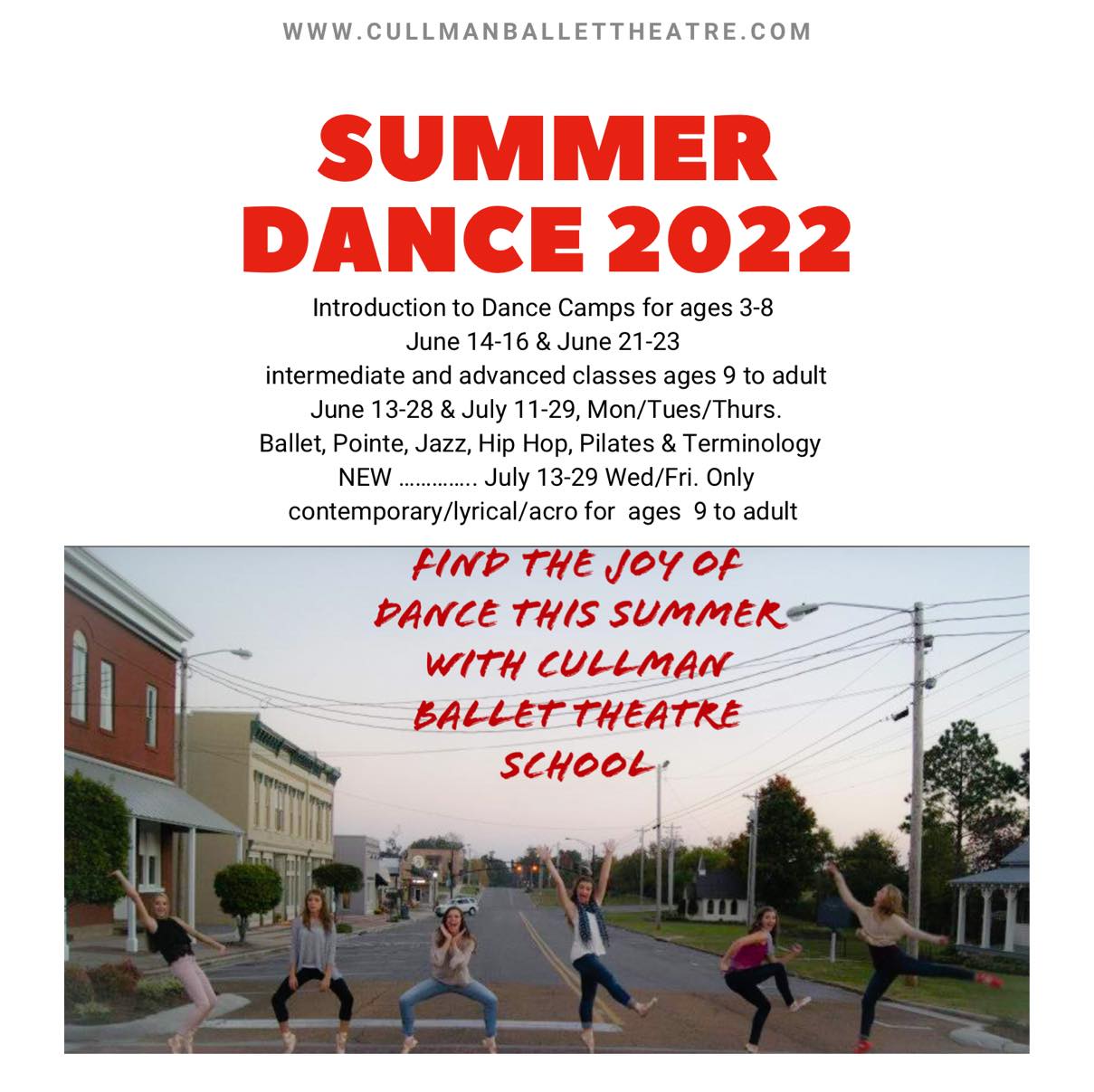 Ballet Theatre School highly stresses summer studies for serious students, Master classes with guest teachers of title are planned throughout the year for Intermediate to Advanced students. Registration can be completed online at https://www.cullmanballettheatre.com/ or at Cullman Ballet Theatre School.