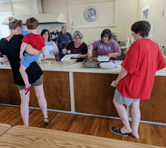 Serving over 125 plates of delicious barbeque, baked beans and potato salad on Tuesday evening, church members kindly greeted their neighbors and welcomed them to partake in a sit-down dinner in their inviting dining area or to take advantage of take-home plates. Rounding out the meal was ice cream sandwiches for dessert.