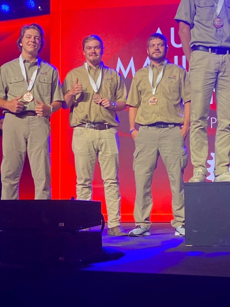 From left, Grant Wiley, Oliver Edge and Robert Combs teamed up to win a bronze in Automated Manufacturing Technology. (Photo courtesy of WSCC)