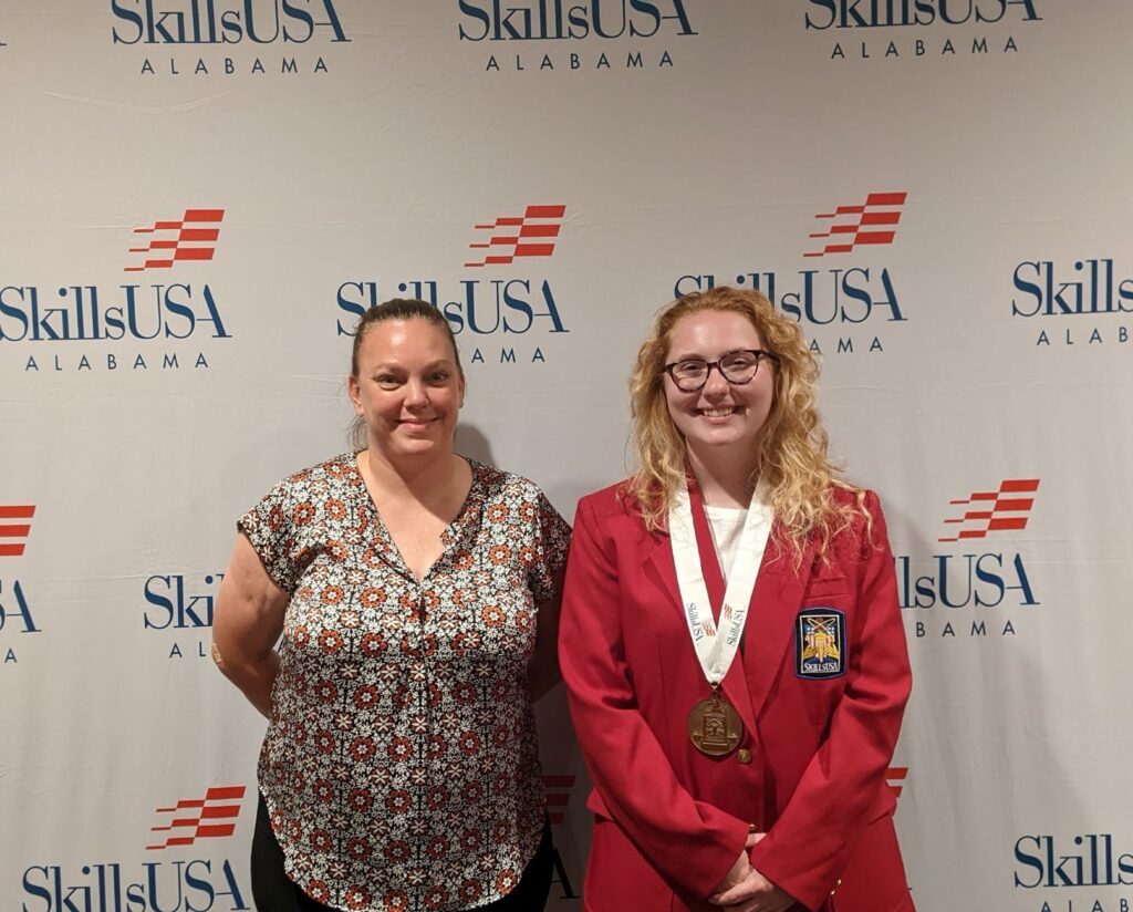 Ayla Dewald won a bronze medal in Criminal Justice. She’s pictured with Wallace State Criminal Justice instructor Brandi Parker. (Photo courtesy of WSCC)