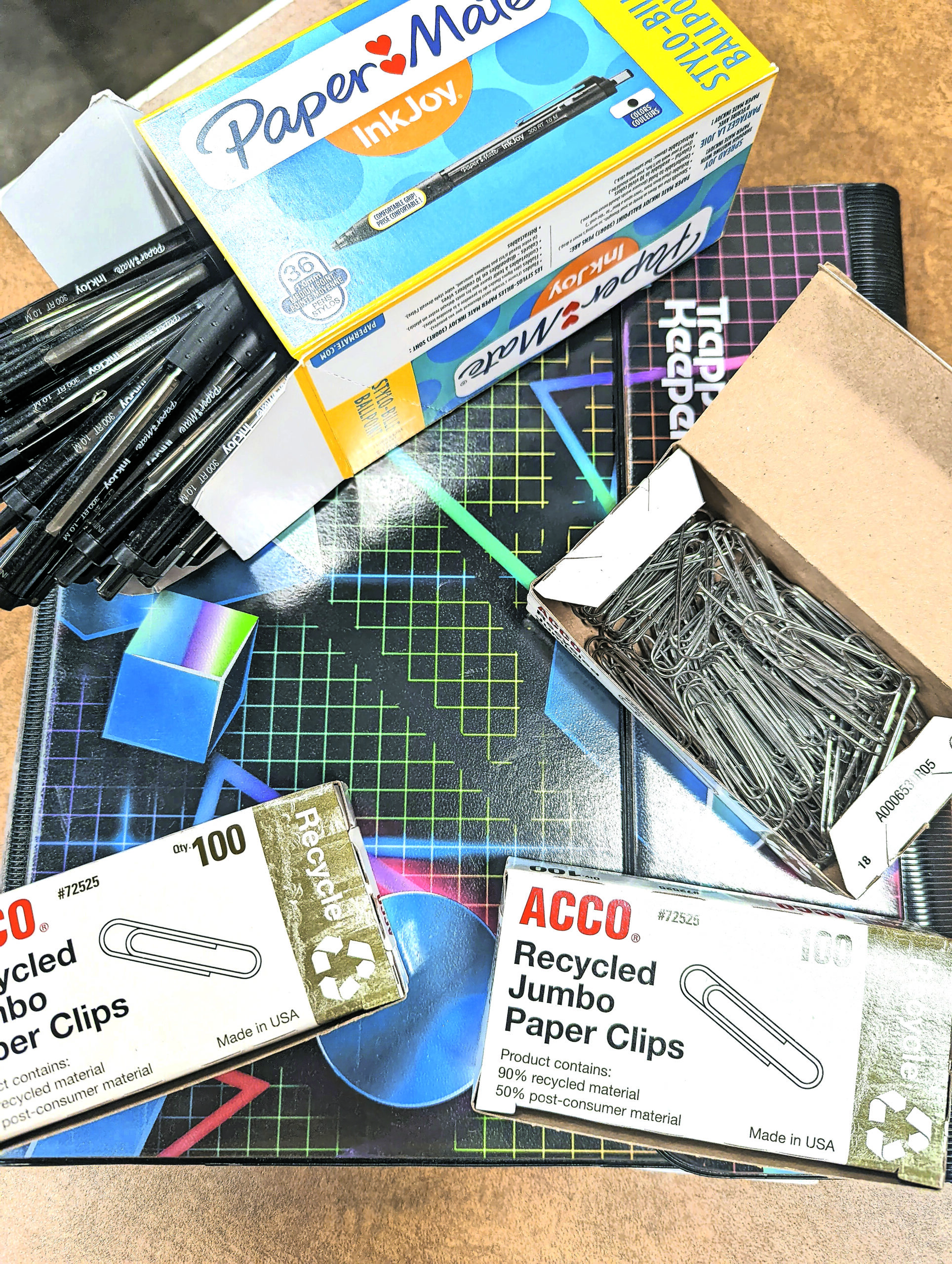 Among the supplies being sought are pencils, pens, colored pencils, crayons, erasers, zippered pencil cases, rulers, graph paper, three-ring binders (1 inch, 2 inch and 3 inch), loose leaf paper, glue sticks, safety scissors, composition notebooks, index cards and hand sanitizer.